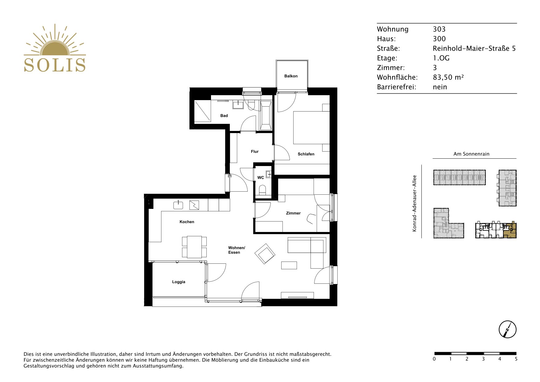 Diese 3-Zimmer teilt sich durch den Zuschnitt in einen Schlafbereich und Wohnbreich auf, welche durch einen geräumigen Flur verbunden werden. Das große Schlafzimmer verfügt über viel Platz und dem Zugang zu einem kleinen Balkon. Das angrenzende Badezimmer ist mit einem Tageslichtfenster, einer Wanne und einer modernen Dusche inkl. Glasspritzschutzwänden ausgestattet. Ergänzt wird dieses um ein separetes innenliegendes Gäste-WC. Angrenzend befindet sich ein zweites Schlafzimmer, welches verschiedene Nutzungen ermöglicht. Der Wohnbereich präsentiert sich mit Vorinstallationen für eine Einbauküche und einer großen Fensterfornt, wodurch für viel Helligkeit gesorgt ist. Abgerundet wird das Wohnkonzept dieser 3-Zimmer-Wohnung durch einen Zugang auf eine nach Südwesten ausgerichtete Loggia. Ein eigener Waschmaschinenanschluss im gemeinsamen Waschraum sowie ein separates Kellerabteil befinden sich im Untergeschoss.