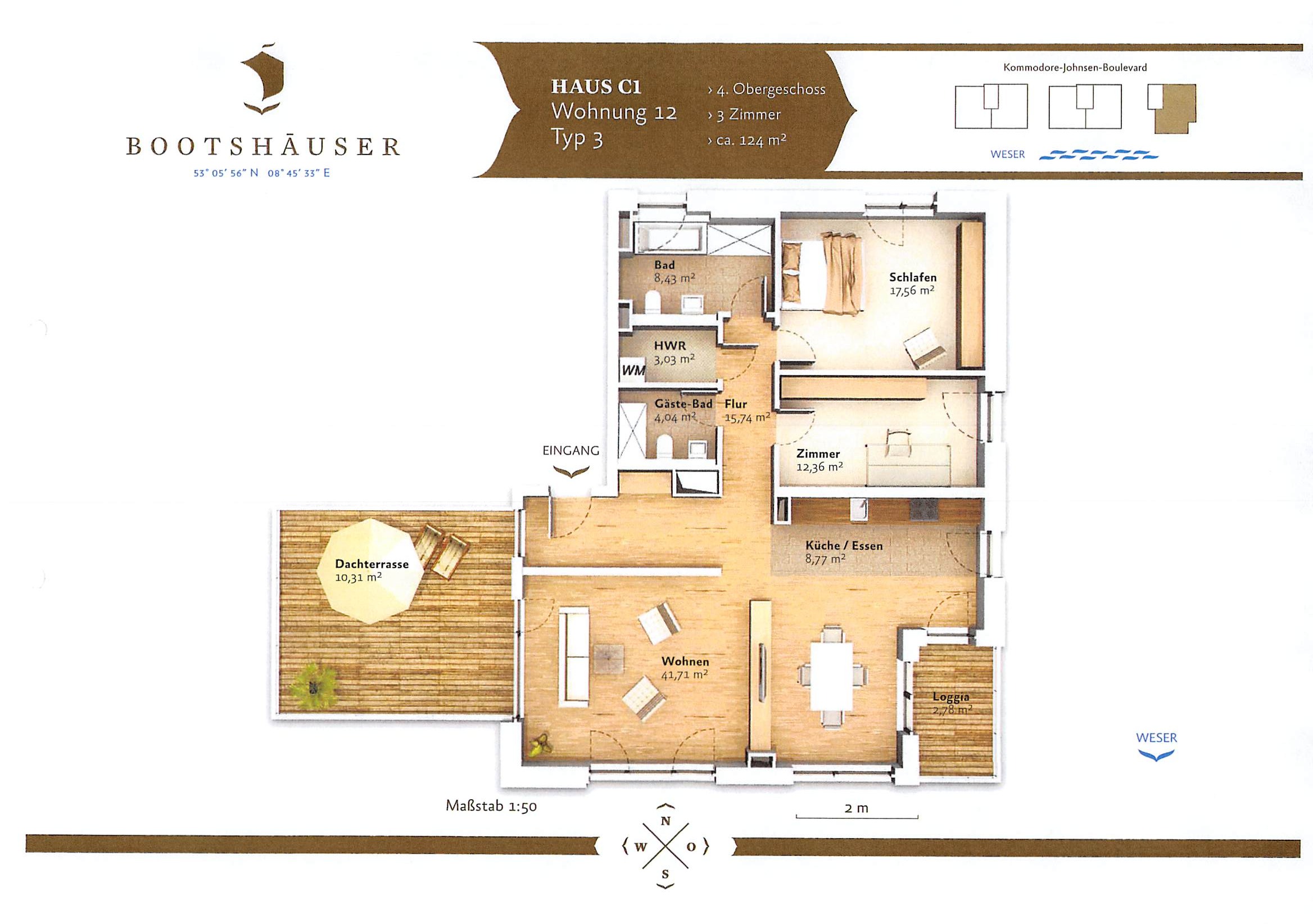 Die modernen Bootshäuser liegen in der Überseestadt direkt an der Weser. Die exklusive Wasserlage ermöglicht es, nach langen, anstrengenden Tagen zu entschleunigen und bei einem Glas Rotwein am Wasser den Tag ausklingen zu lassen. Der weitläufige Strandpark „Waller Sand“ befindet sich in direkter Nachbarschaft und lädt insbesondere an heißen Sommertagen mit Volleyballfeldern und zahlreichen Sitzmöglichkeiten zum Verweilen ein. In unmittelbarer Nähe liegt zudem der Überseepark, welcher mit seinen großen Erholungsflächen, dem Spielplatz und einer Skatebahn für alle Altersklassen etwas zu bieten hat. In Kombination mit dem abwechslungsreichen kulinarischen und kulturellen Angebot entsteht ein ganz eigenes, besonderes Flair der Überseestadt.