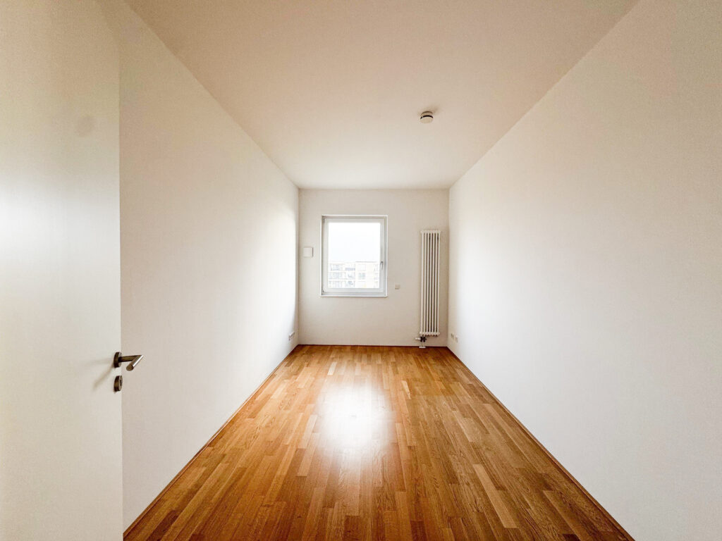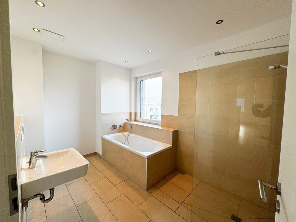 Bei der angebotenen Wohnung handelt es sich um eine 3-Zimmer-Wohnung im 4. OG. Beim Betreten der Wohnung gelangt man in einen kleinen Dielenbereich mit einer Nische für eine Kommode oder Ankleide. Weiter gelangt man in das Wohnzimmer mit offener Küche und Zugang zur Loggia, sowie der Dachterrasse. Ein vom Wohnzimmer ausgehender Flur erschließt die beiden Schlafzimmer, ein innenliegendes Gäste-Bad und ein Tageslichtbad mit Badewanne. Zusätzlich verfügt die Wohnung über einen Abstellraum mit WMA. Weiterhin kann ein Tiefgaragenstellplatz angemietet werden. Zudem bietet ein Kellerraum weitere Staufläche.