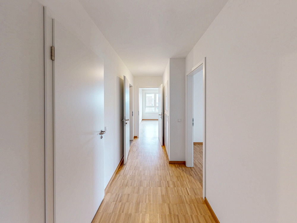 Platz für die ganze Familie: Die Wohnung verfügt über zwei moderne Bäder, einen Abstellraum, zwei Kinder- oder Arbeitszimmer sowie einem großen Schlafzimmer und einem hellen Wohnbereich mit offener Küche und direktem Balkonzugang. Hier findet Ihre Familie ein modernes, komfortables Zuhause mit cleverer Raumaufteilung.