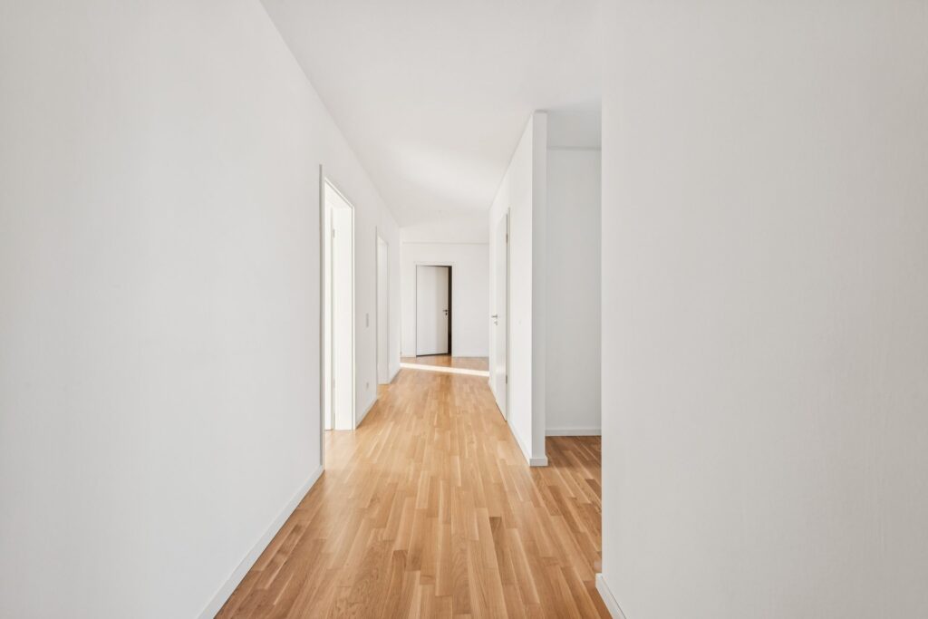 Moderne 4-Zimmer-Etagenwohnung mit gut geschnittenem Grundriss, offenem Wohnbereich und integrierter Einbauküche. Bodentiefe Fenster sorgen für helle Räume, edles Parkett und Fußbodenheizung bieten hohen Wohnkomfort. Die Wohnung verfügt über einen Balkon, zwei moderne Badezimmer sowie ein Gäste-WC.
