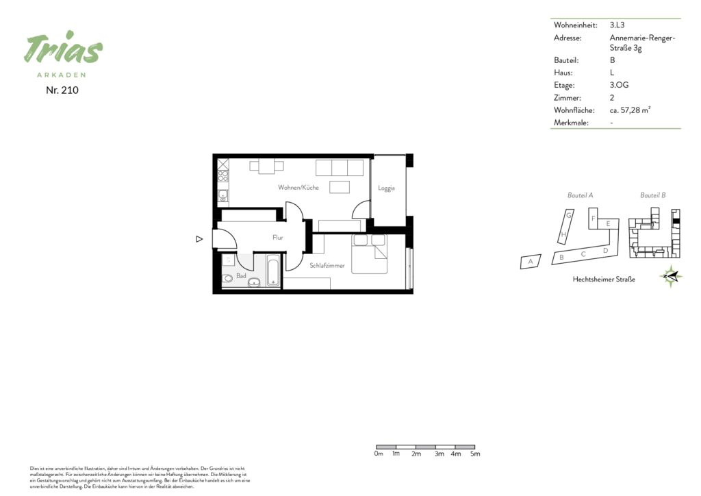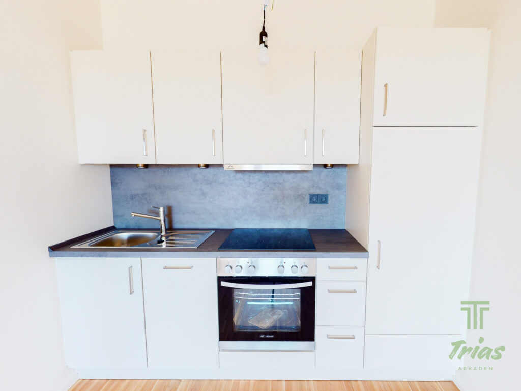 Die hier angebotene 2-Zimmer-Wohnung verfügt über einen komibinierten Wohn- und Essbereich mit offener Küche (inkl. Einbauküche). Das Schlafzimmer und das moderne Wannenbad (inkl. Waschmaschinenanschluss) sind über den Flur erreichbar. Die vom Wohnbereich aus begehbare Loggia lädt zum Verweilen ein.