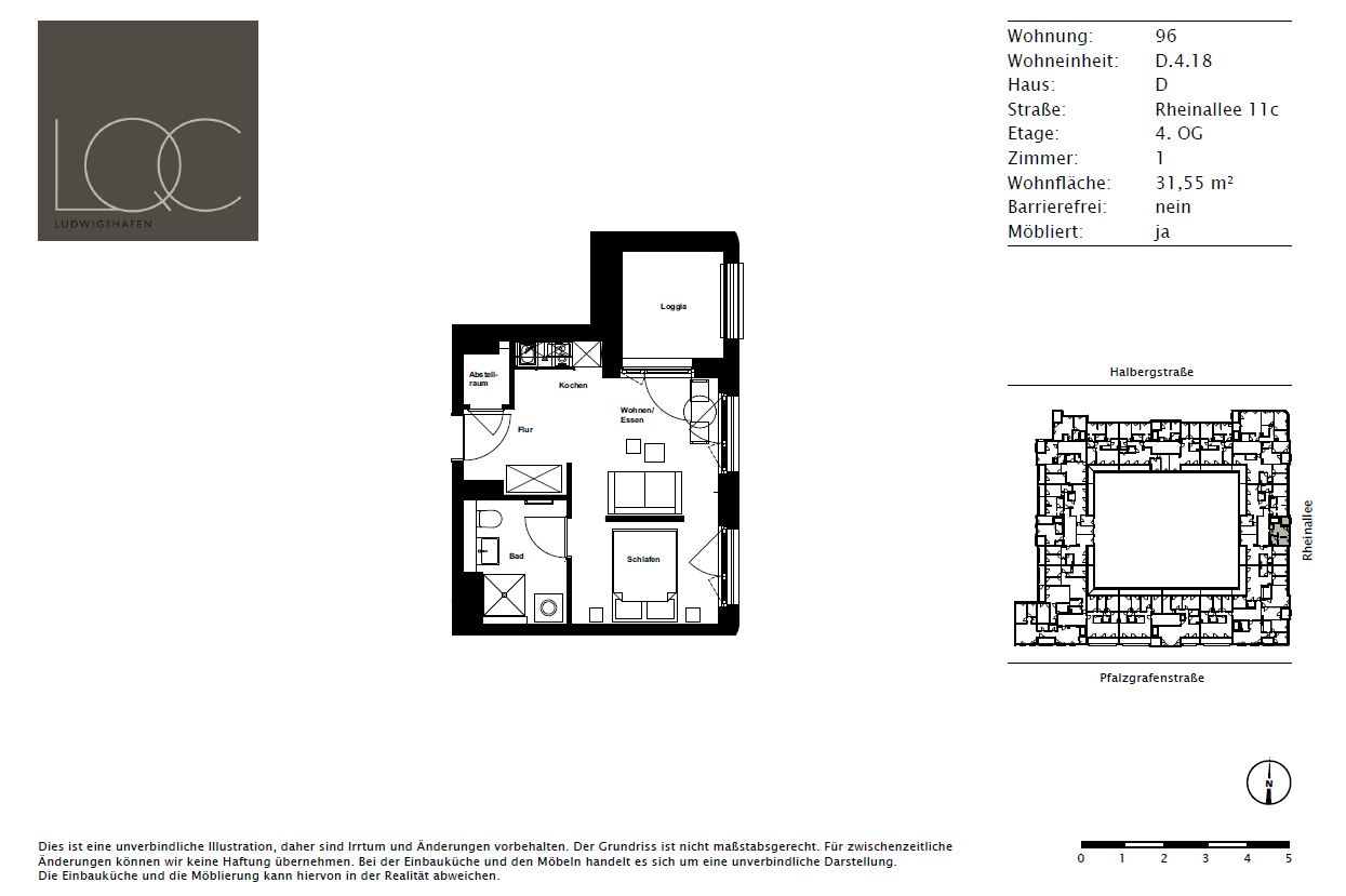 Die Wohnung ist Teil des Projekts LQC und liegt zentral gelegen in Ludwigshafen nahe am Ufer des Rheins. Das Wohngebäude umfasst 195 Wohnungen in verschiedenen Größen. Zur Vermietung stehen kompakte 1-Zimmer Wohnungen, aber auch größere 2- bis 5-Zimmer Wohnungen. Nahezu alle Einheiten verfügen über eine Terrasse, einen Balkon oder eine Loggia. Die für die meisten Wohnungen vorhandenen Mieterkeller, Technikräume und die Tiefgarage befinden sich im Untergeschoss des Gebäudes. Bitte beachten Sie, dass die maximale Einfahrtshöhe zu den Stellplatzsystemen 1,75m beträgt.