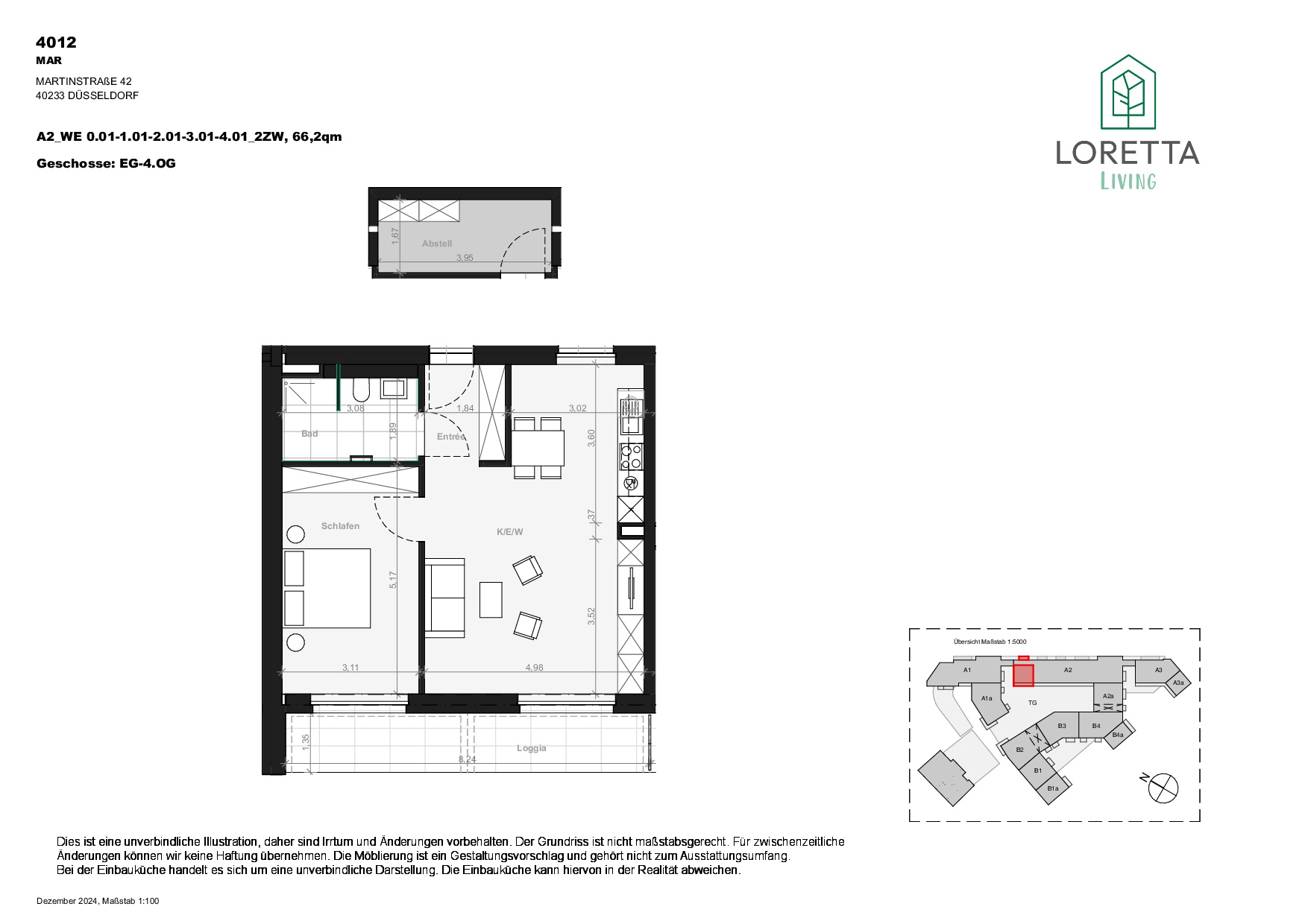 Willkommen bei Loretta Living – einem modernen Wohnensemble in zentraler Lage von Düsseldorf, das urbanes Lebensgefühl mit naturnahem Wohnen verbindet. Das Gebäudeensemble bestehend aus einem fünf- und einem viergeschossigen Baukörper verkörpert modernes, komfortables Wohnen und bietet eine vielfältige Auswahl an durchdachten Grundrissen – ideal für Singles, Paare und Familien. Jede Wohnung überzeugt durch helle, offene Räume, Fußbodenheizung, eine moderne Einbauküche sowie Fenster mit Dreifachverglasung und erhöhtem Schallschutz. Besondere Highlights sind die privaten Außenbereiche: Alle Einheiten verfügen über einen Balkon, eine Loggia oder eine Terrasse mit Blick auf begrünte Innenhöfe – ideal zum Entspannen. Dank Aufzügen, stufenlosem Zugang und durchdachtem Design ist Loretta Living für jede Lebensphase geeignet.