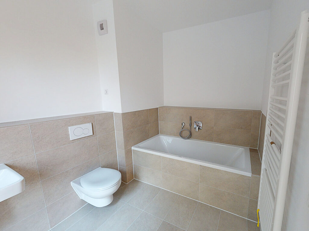 Zwei Schlafzimmer, ein Hauptbad mit Wanne sowie ein separates Duschbad bieten hohen Komfort. Ein praktischer Hauswirtschaftsraum (HWR) und die durchdachte Raumverteilung unterstreichen den modernen Wohnanspruch des Projekts.
