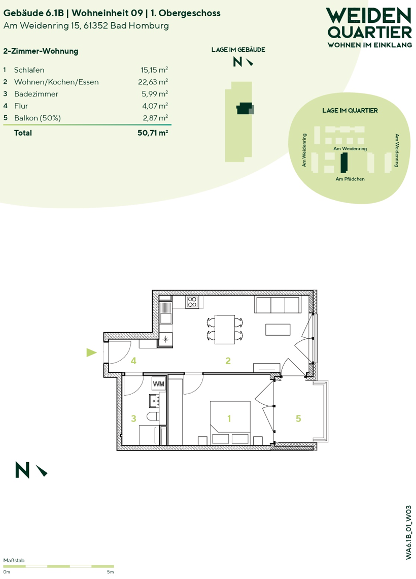 Die kompakte 2-Zimmer-Wohnung verfügt über ein Schlafzimmer sowie einen gemütlichen Wohn- und Essbereich mit einer L-förmigen Küche (inkl. Einbauküche). Über den Wohn- und Schlafbereich gelangt man zum Balkon. Das Duschbad ist mit einem Waschmaschinenanschluss ausgestattet.