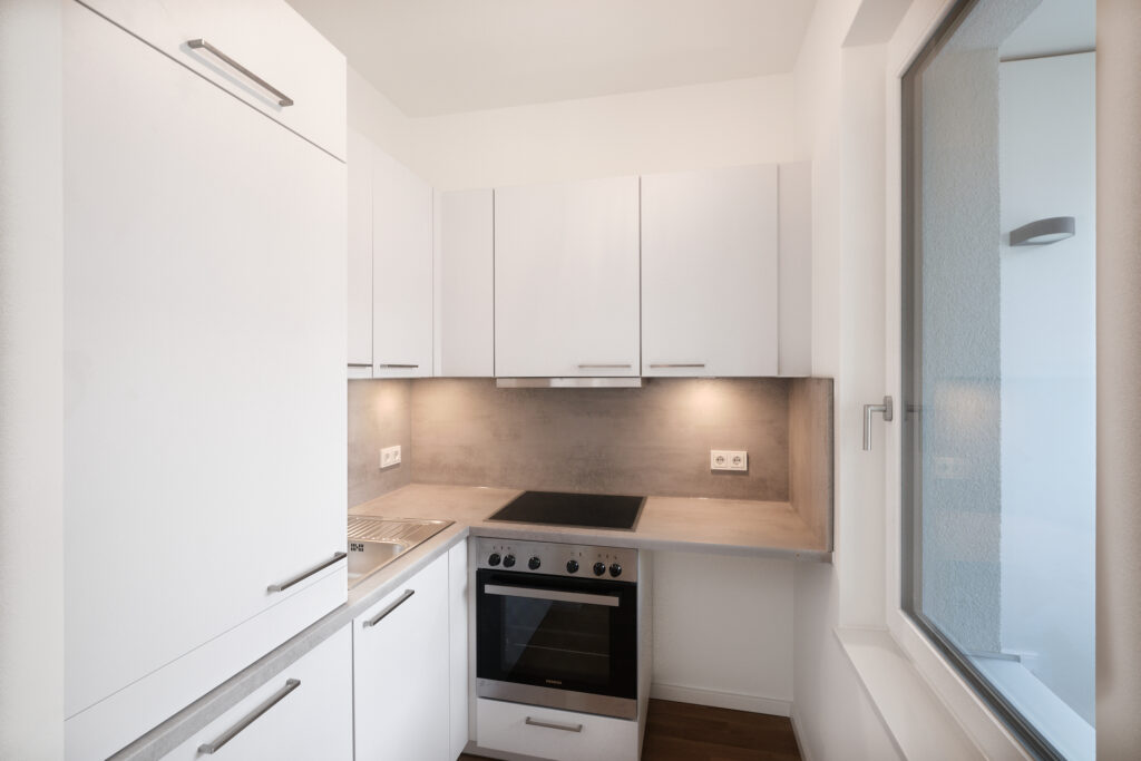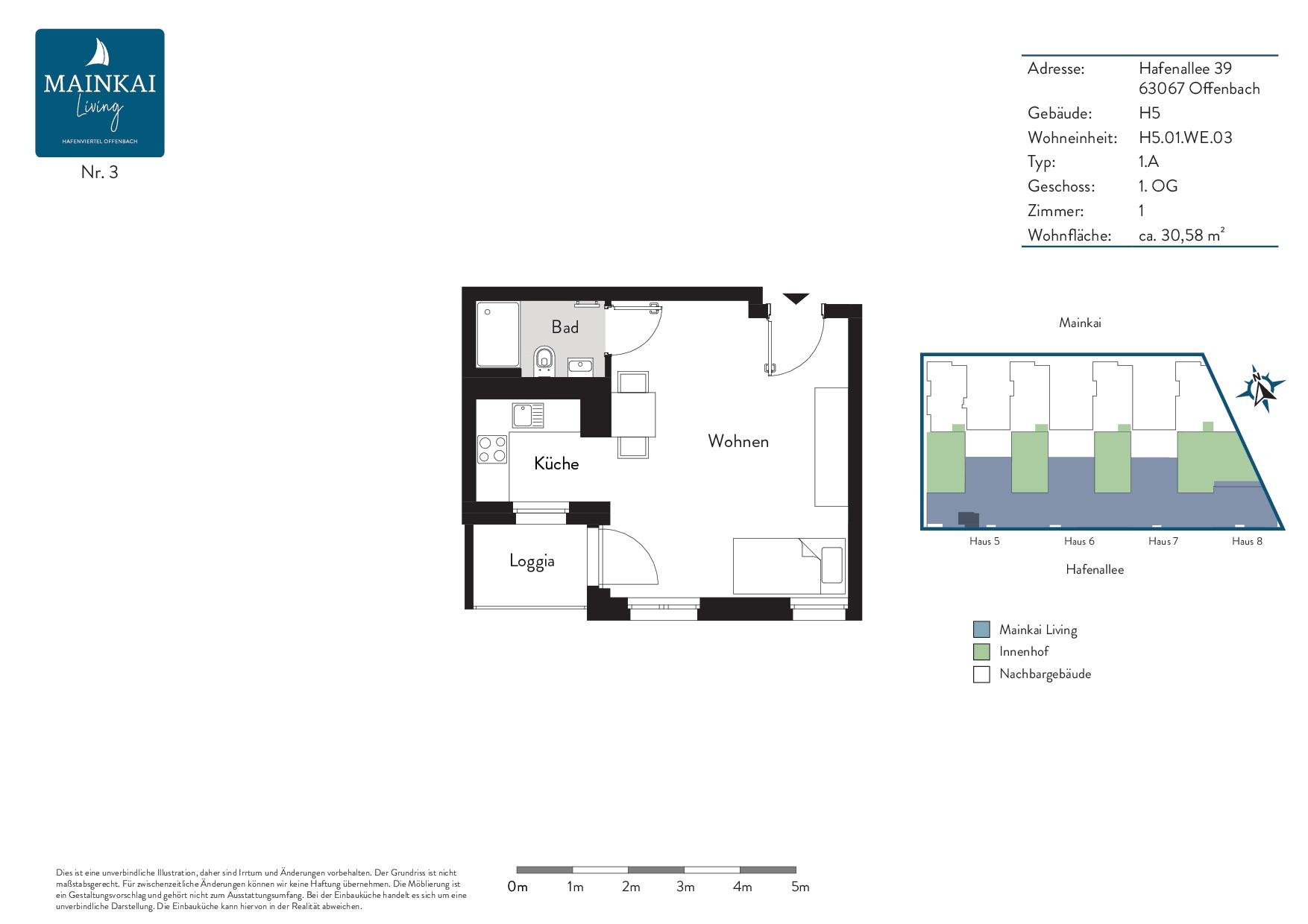 Die hier angebotene 1-Zimmer-Wohnung befindet sich im Gebäudeensemble "Mainkai Living" im Hafenviertel Offenbach.