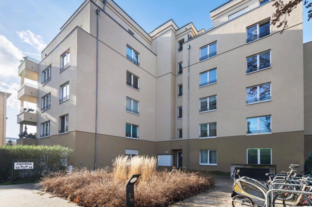 Die hier angebotene Wohnung ist Teil eines neuwertigen Gebäudeensembles im Jugendweg im Stadtteil Siemensstadt des Bezirks Spandau. Die 2-Zimmer-Wohnung ist ca. 59 m² groß und verfügt über einen großzügigen Wohn- und Essbereich mit offener Küche (inkl. Einbauküche) und Zugang zur Dachterrasse, einem Schlafzimmer und einem Abstellraum mit Waschmaschinen- und Trockneranschluss.