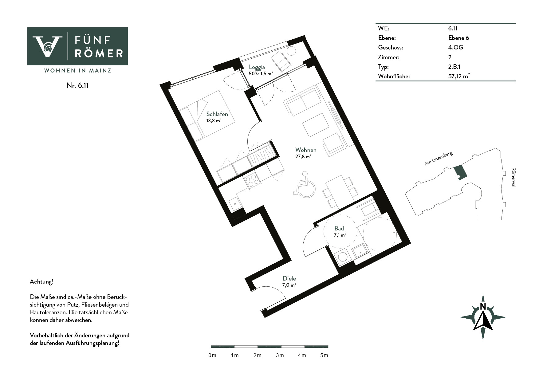 Die Wohnanlage FÜNF RÖMER ist Teil eines fünfteiligen Wohnkomplexes, der sich entlang der Straßen Am Linsenberg und Römerwall erstreckt. Auf über 8.000 Quadratmetern Wohnfläche bietet sie 146 modern ausgestattete 1- bis 4-Zimmer-Wohnungen – mit einem besonderen Schwerpunkt auf den begehrten kompakteren Wohnungen.