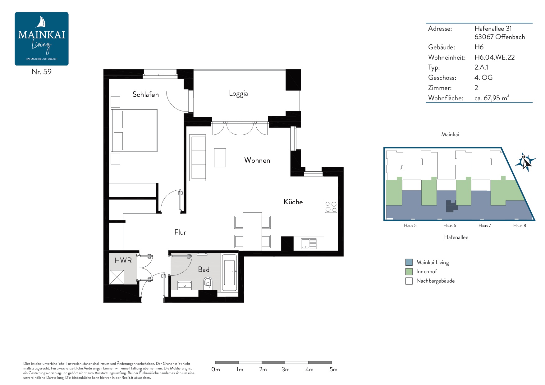 Die hier angebotene 2-Zimmer-Wohnung befindet sich im Gebäudeensemble "Mainkai Living" im Hafenviertel Offenbach.