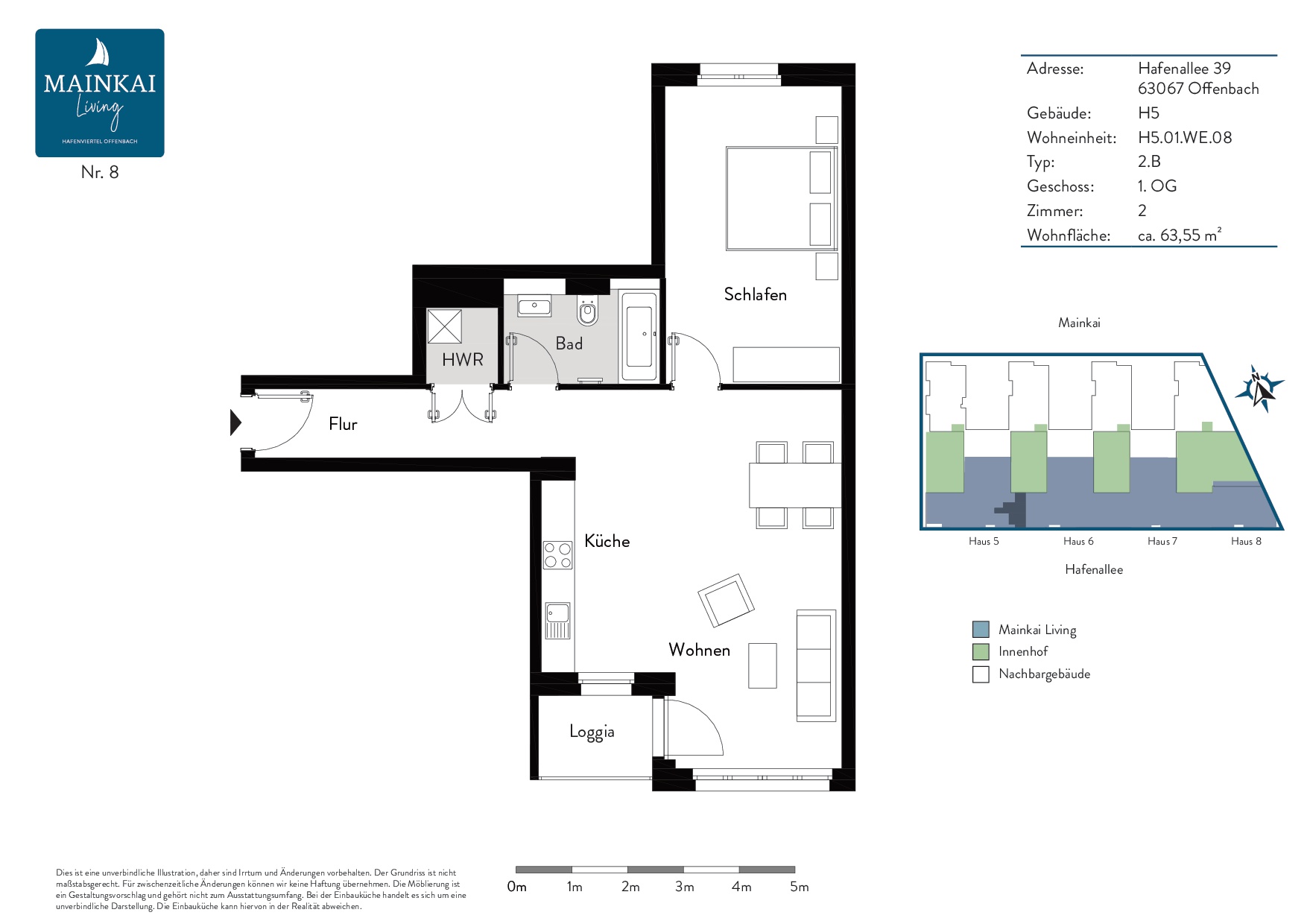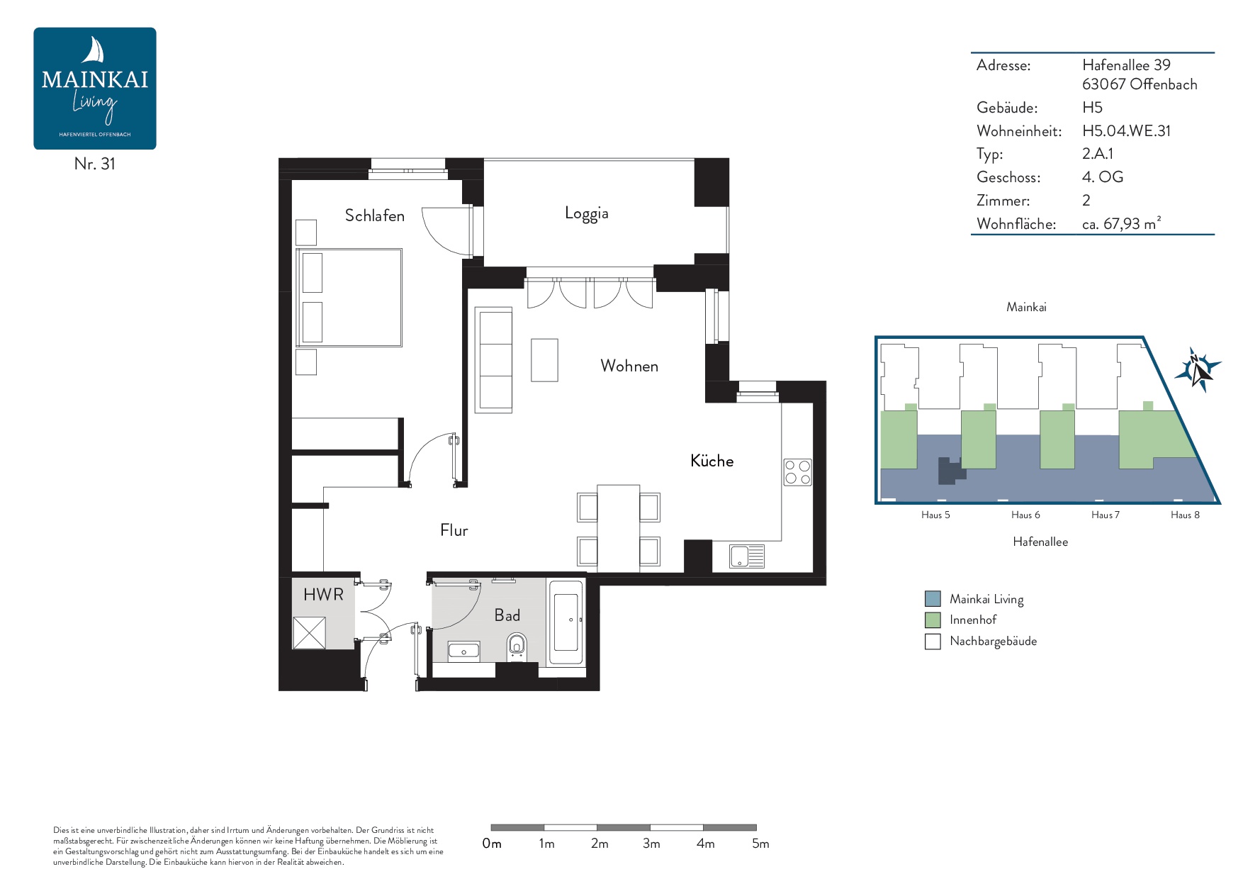 Die hier angebotene 2-Zimmer-Wohnung befindet sich im Gebäudeensemble "Mainkai Living" im Hafenviertel Offenbach.