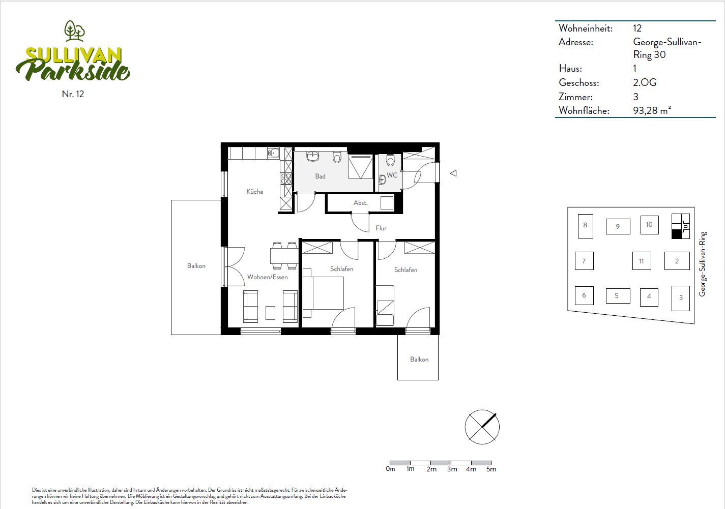 Die Fotos der Wohnung zeigen eine Musterwohnung im Projekt. Die beschriebene Wohnung befindet sich im 2. Obergeschoss. Der Wohn- und Essbereich ist gespiegelt im Gegensatz zu den Fotos. (bitte siehe Grundriss).