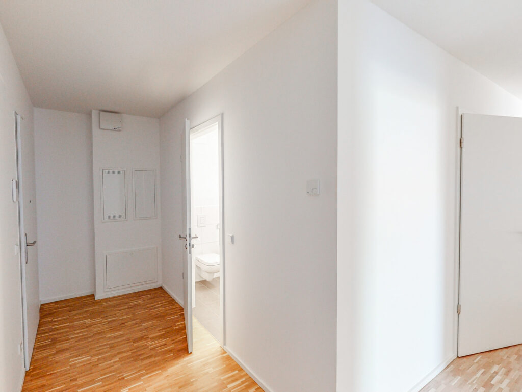 Bei den Bildern handelt es sich um Fotos einer Musterwohnung im Projekt. Ausstattung und Schnitt können abweichen.