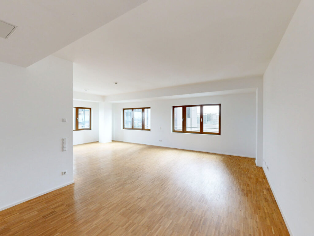 Die lichtdurchflutete 4-Zimmer-Wohnung liegt in einem modernen Wohnhaus in der begehrten Georg‑Voigt‑Straße im Frankfurter Westend. Das Gebäude überzeugt durch eine moderne Bauweise, ein freundliches Entrée und einen insgesamt sehr gepflegten Eindruck – hier verbindet sich zentrale City-Lage mit einem angenehmen, urbanen Wohnumfeld. Die Wohnung besteht unter anderem aus einem offenen Wohnbereich mit offener Küche, der viel Tageslicht hereinlässt. Das große sowie die beiden kleineren Schlafzimmer sind praktisch geschnitten und bieten ausreichend Platz für individuelle Einrichtungsideen. Zusätzlichen Komfort bieten die beiden Bäder, die eine flexible Nutzung als Familie ermöglichen. Ein Highlight der Wohnung ist der tolle Ausblick auf die urbane Nachbarschaft und die Frankfurter Skyline – perfekt, um nach einem Arbeitstag zu entspannen oder den Blick über das lebendige Viertel schweifen zu lassen - ideal für alle, die das urbane Leben schätzen.