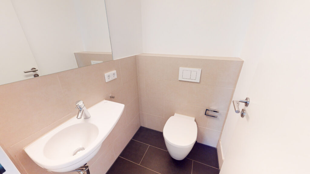 In der Wohnung erwartet Sie ein Flur mit Garderobe, ein Wohn- und Essbereich mit moderner Einbauküche, zwei Schlafzimmer sowie ein Bad mit Badewanne und bodengleicher Dusche. Die Terrasse erreichen Sie vom Wohnbereich aus. Ein Gäste-WC rundet das Gesamtbild ab. Ein Abstellraum mit Waschmaschinenanschluss bietet zusätzlichen Stauraum.