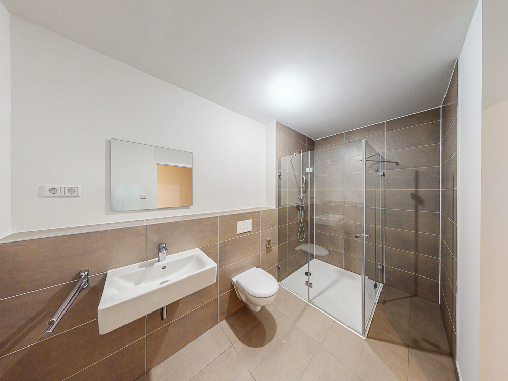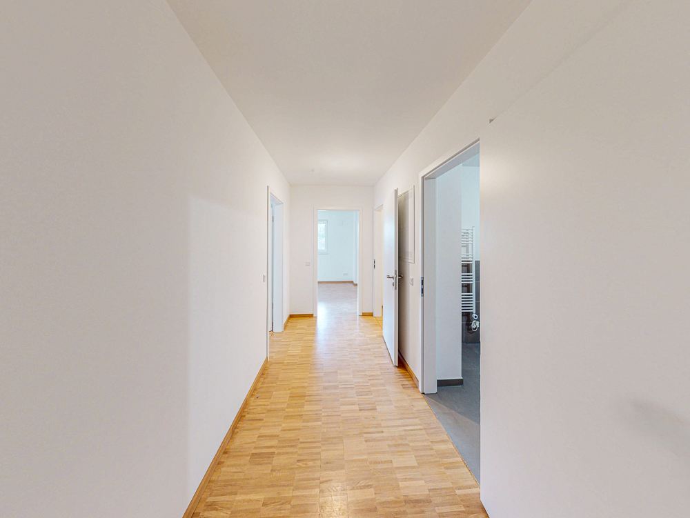 Dieses 2-Zimmer-Apartment kombiniert clevere Raumaufteilung mit modernem Komfort: Vom Eingangsbereich aus erschließen sich das großzügige Badezimmer, das Schlafzimmer sowie ein praktischer Abstellraum. Am Ende des Flurs findet sich die offen gestaltete, bereits ausgestattete Wohnküche, die das Herzstück der Wohnung bildet. Hochwertiges Eichenparkett, Fußbodenheizung und ein vollständig digitalisiertes Zugangssystem mit Chip-Zutritt sorgen für ein modernes Wohngefühl.