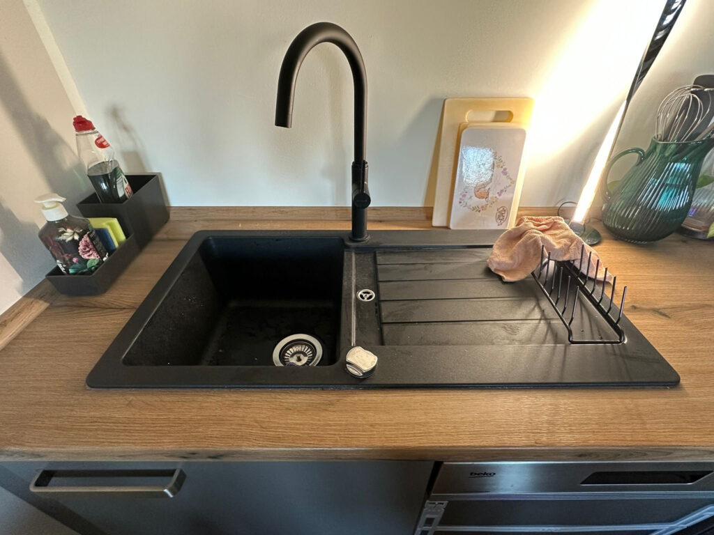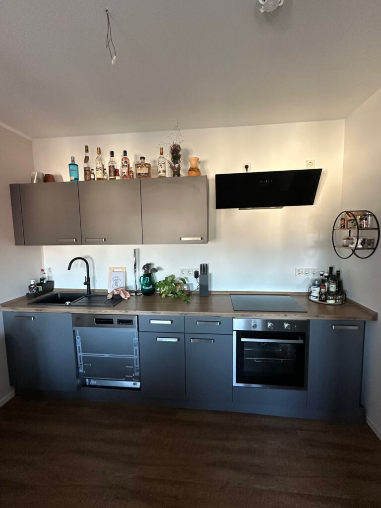 Die Vormieter wollen bei Interesse gerne ihre Küche inkl. Geräte (exklusive Geschirrspüler) für 1.400 € verkaufen. Die Geräte (Herdplatte, Ofen) sind ca. 5 Jahre alt und in einem guten Zustand. Die Dunstabzugshaube und die Küche selbst sind ca. 2 Jahre alt.