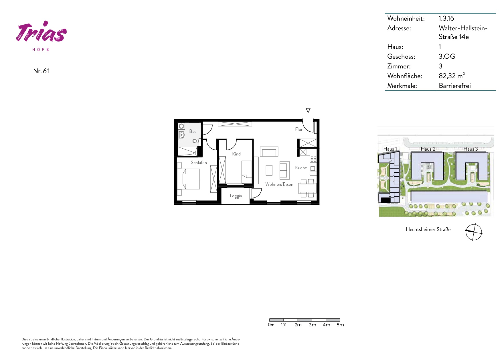 Die hier angebotene 3-Zimmer-Wohnung ist Teil des Neubauprojekts TRIAS HÖFE. Die Wohnung verfügt über einen großzügigen Wohn- und Essbereich, mit einer offenen Küche (inkl. Einbauküche), ein Duschbad sowie zwei Schlafzimmer, welche direkt über den Flur zugänglich sind. Die vom Wohnzimmer aus begehbare Loggia lädt zum Verweilen ein.