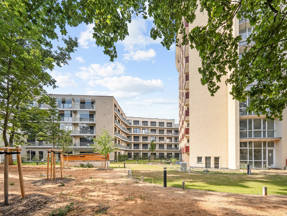 Einladend und großzügig präsentiert sich das 2-Zimmer-Apartment mit kleinem Flur und weiträumigem Wohnbereich mit praktisch integrierter Küchenzone und Zugang zum Balkon. Ein gut geschnittenes Schlafzimmer und ein Bad mit Dusche machen die Wohnung perfekt für Paare oder Singles.