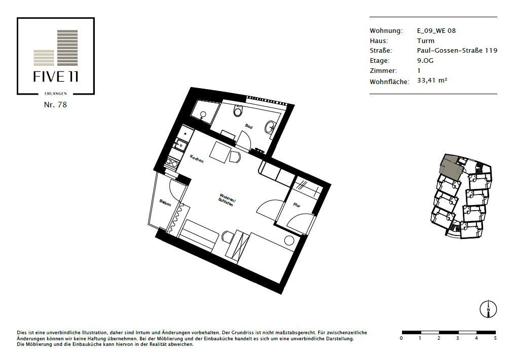 Praktisch geschnitten und stilvoll möbliert lädt auch die Studio-Wohnung Plus zum Wohnen und Arbeiten ein. Vom Flur aus gelangt man in das geräumige Wohnzimmer, das einen integrierten Kochbereich und Zutritt zum Balkon bietet. Auch das Badezimmer erreicht man vom Wohnzimmer aus. Die Möblierung umfasst hochwertige Küchenmöbel und -geräte, Schränke, Bett und Sofa, Esstisch und Regal mit Schreibtisch. Die rund 32m2 großen Appartements stehen auf jeder der 11 Etagen zur Auswahl.
