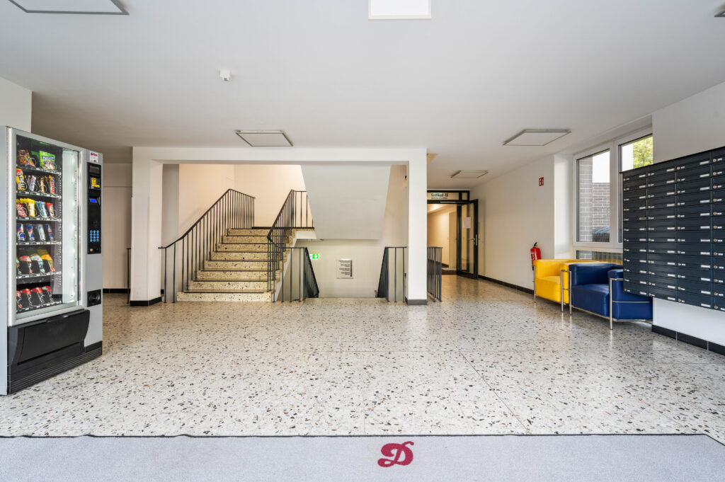 In zentraler Lage von Köln-Deutz befindet sich ein modernes Studentenwohnheim, das im Jahr 2015 umfassend saniert wurde. Das Wohnheim umfasst 120 Wohneinheiten, die sich in stilvolle 1-Zimmer-Apartments sowie Einzelzimmer in 2er-, 3er- und 4er-Wohngemeinschaften unterteilen. Mit Wohnflächen zwischen ca. 16 und 56 m² bieten die Einheiten eine ideale Lösung für Studierende und Auszubildende, die zentral und komfortabel wohnen möchten. Alle Apartments und WG-Zimmer sind vollständig möbliert und mit einer praktischen Pantryküche ausgestattet.