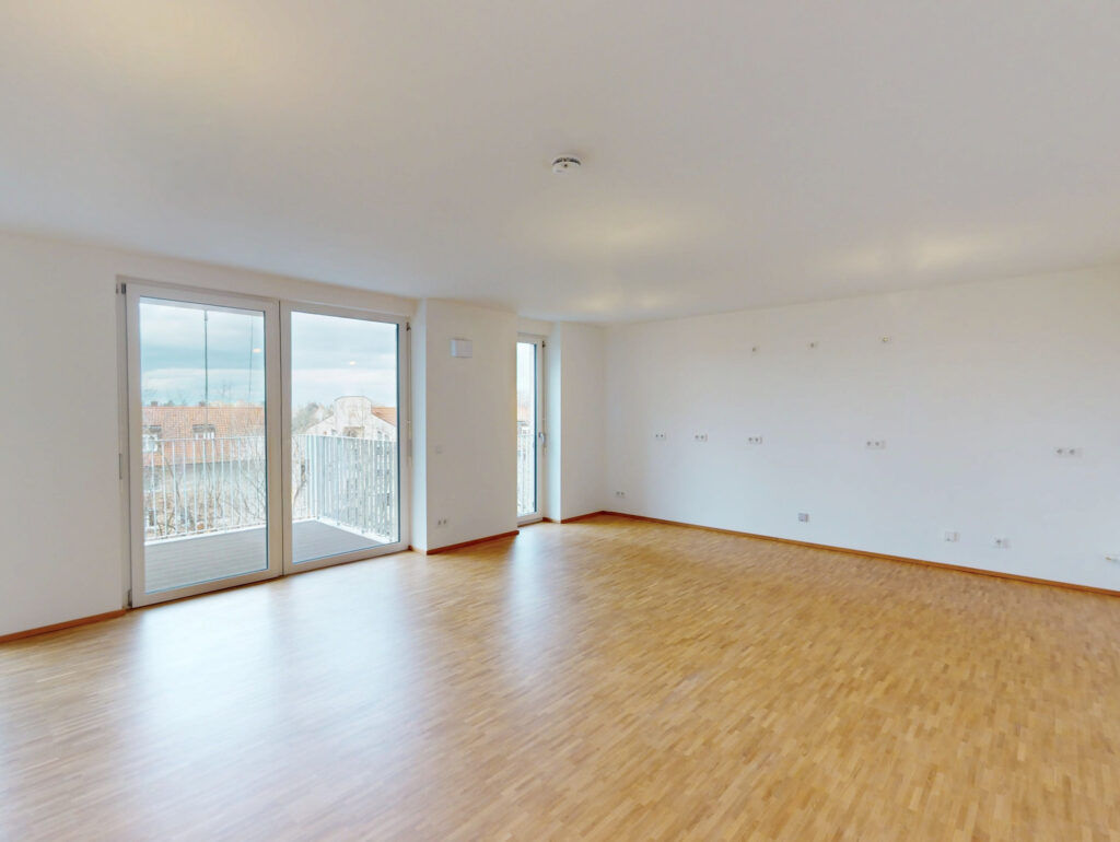 Der großzügige Wohn- und Essbereich mit offener Küche bildet das Herzstück der Wohnung. Durch die großen Fensterfronten entsteht eine freundliche, lichtdurchflutete Atmosphäre. Vom Wohnbereich aus gelangen Sie direkt auf den Balkon, der zum Entspannen und Genießen einlädt.