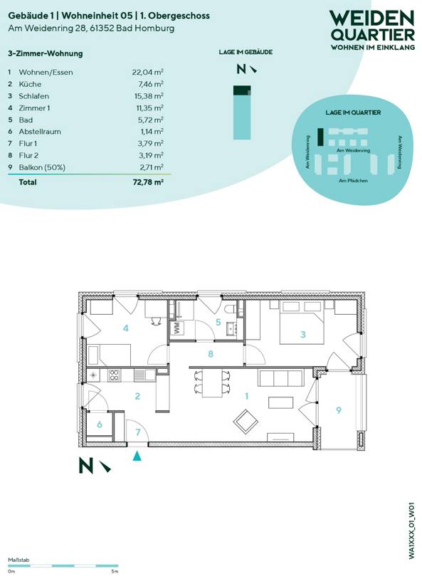 Die hier angebotene 3-Zimmer-Wohnung verfügt über zwei Schlafzimmer sowie einen geräumigen Wohn- und Essbereich, In der halboffene Küche (inkl. Einbauküche) befindet sich ein kleiner Abstellraum. Das moderne Bad (inkl. Waschmaschinenanschluss) ist über den Flur erreichbar. Zur Wohnung gehört außerdem noch ein gemütlicher Balkon.