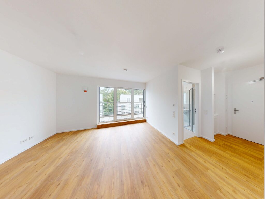 Im Eingangsbereich empfängt dich ein heller Flur mit praktischem Abstellraum, der zusätzlichen Stauraum bietet. Die moderne Einbauküche ist offen in den Wohnbereich integriert und schafft eine einladende Atmosphäre zum Kochen, Essen und Wohnen.