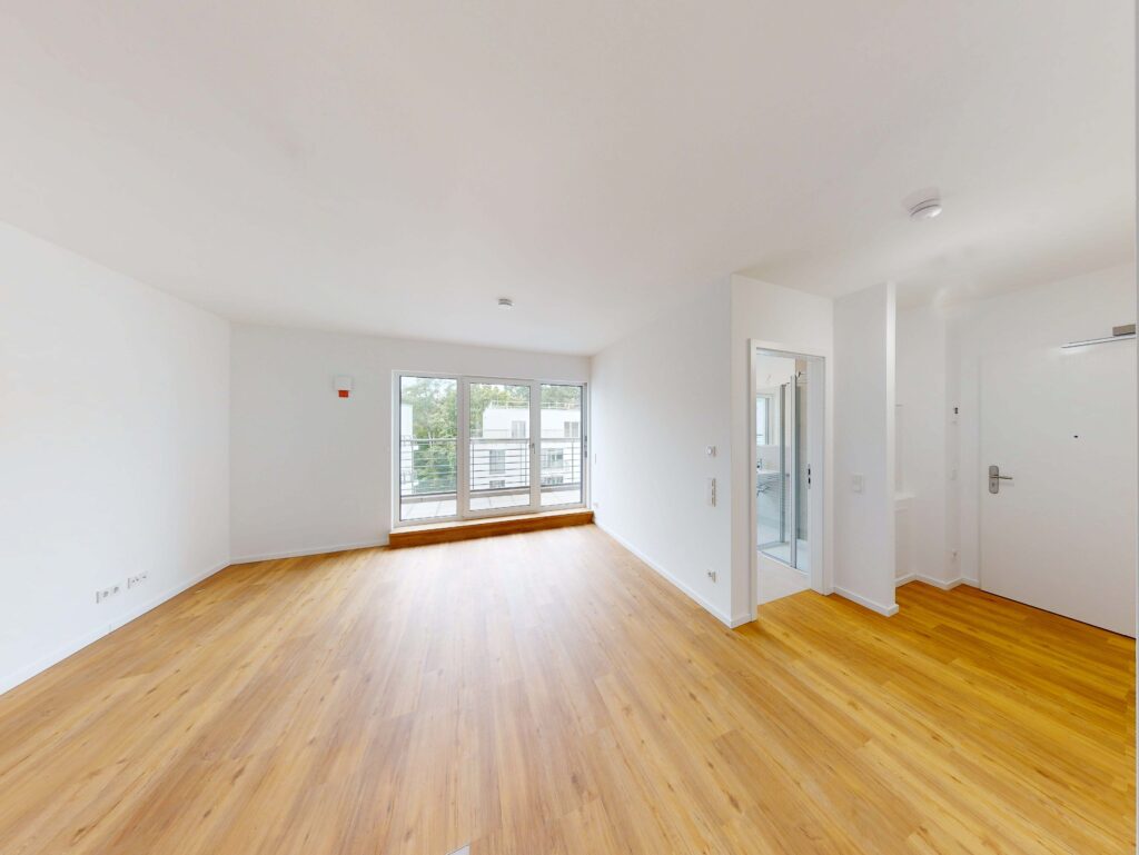 Im Eingangsbereich empfängt dich ein heller Flur mit praktischem Abstellraum, der zusätzlichen Stauraum bietet. Die moderne Einbauküche ist offen in den Wohnbereich integriert und schafft eine einladende Atmosphäre zum Kochen, Essen und Wohnen.
