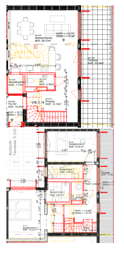 Besonders hervorzuheben sind die Terrassen und die großzügige Dachterrasse, die einen überragenden Blick über die Stadt bieten und viel Raum für Entspannung im Freien schaffen.
