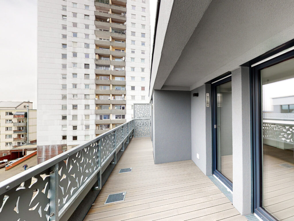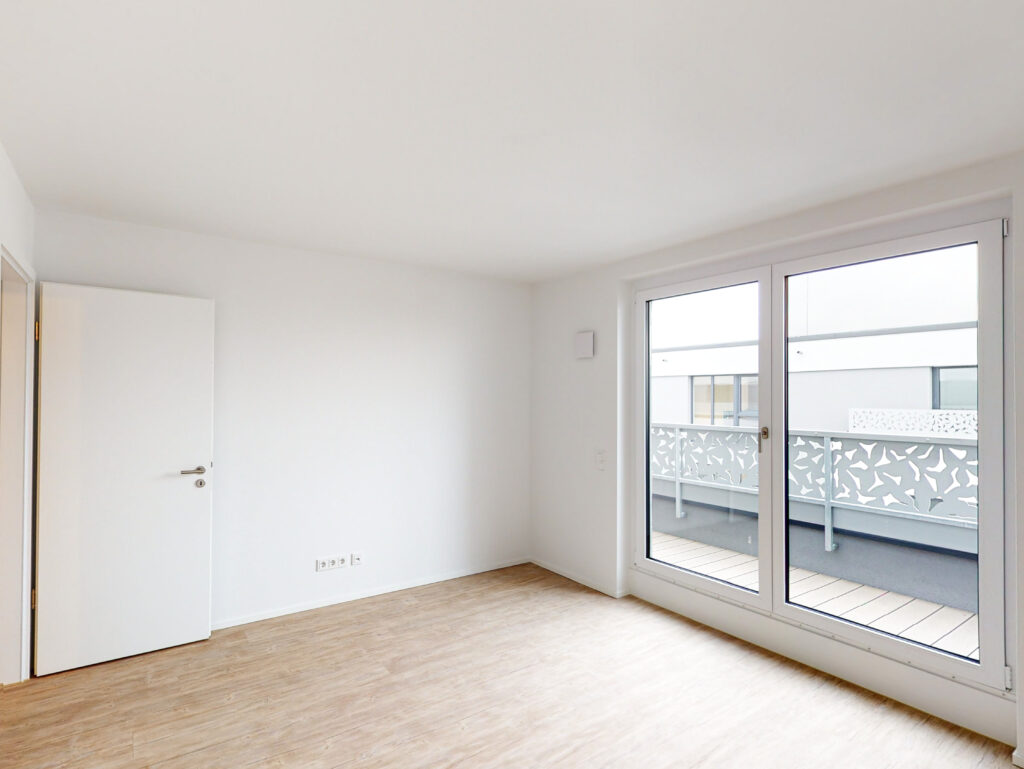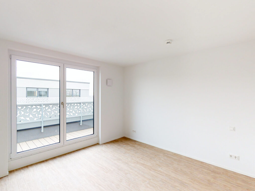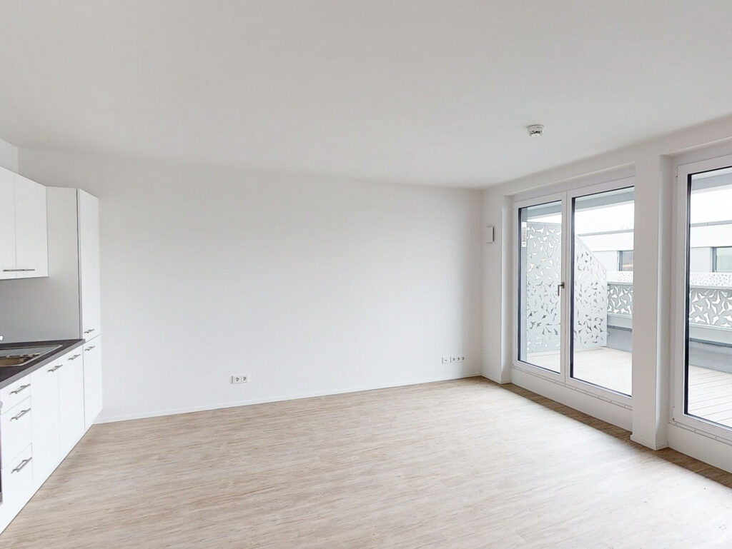 Besondere Wohnqualität bieten die Penthousewohnungen im DUO Living. Der Eingangsbereich der Wohnung führt direkt in den hellen und lichtdurchfluteten Wohnbereich mit offener Küche, welche mit einer modernen Einbauküche ausgestattet ist. Der an den Flur angrenzende Abstellraum mit Waschmaschinenanschluss bietet zusätzlichen Stauraum. Weiterhin verfügt die Wohnung über ein Schlafzimmer sowie ein modernes Bad mit ebenerdiger Dusche. Die nach Süden ausgerichtete Dachterrasse lädt zu gemütlichen Stunden im Freien ein.