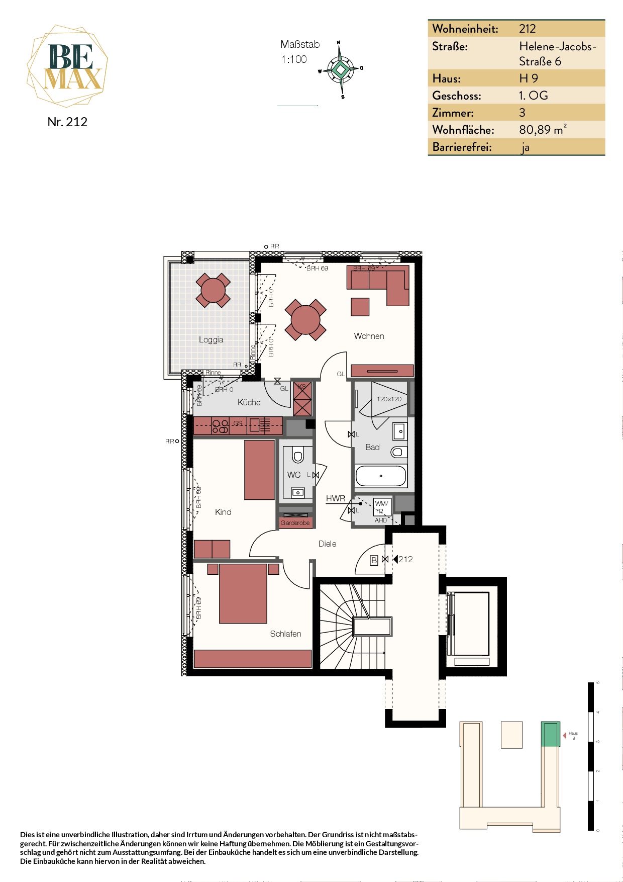 Jede Wohnung begeistert mit einem Balkon, einer Loggia oder Terrasse. Einige der Erdgeschosswohnungen verfügen über einen eigenen Garten. Raumhöhen zwischen 2,72 und 2,90 Metern, teils bodentiefe Fenster und glattweiß tapezierte Wände verleihen den mit Eichenparkett ausgelegten Wohnräumen eine großzügige Ausstrahlung.