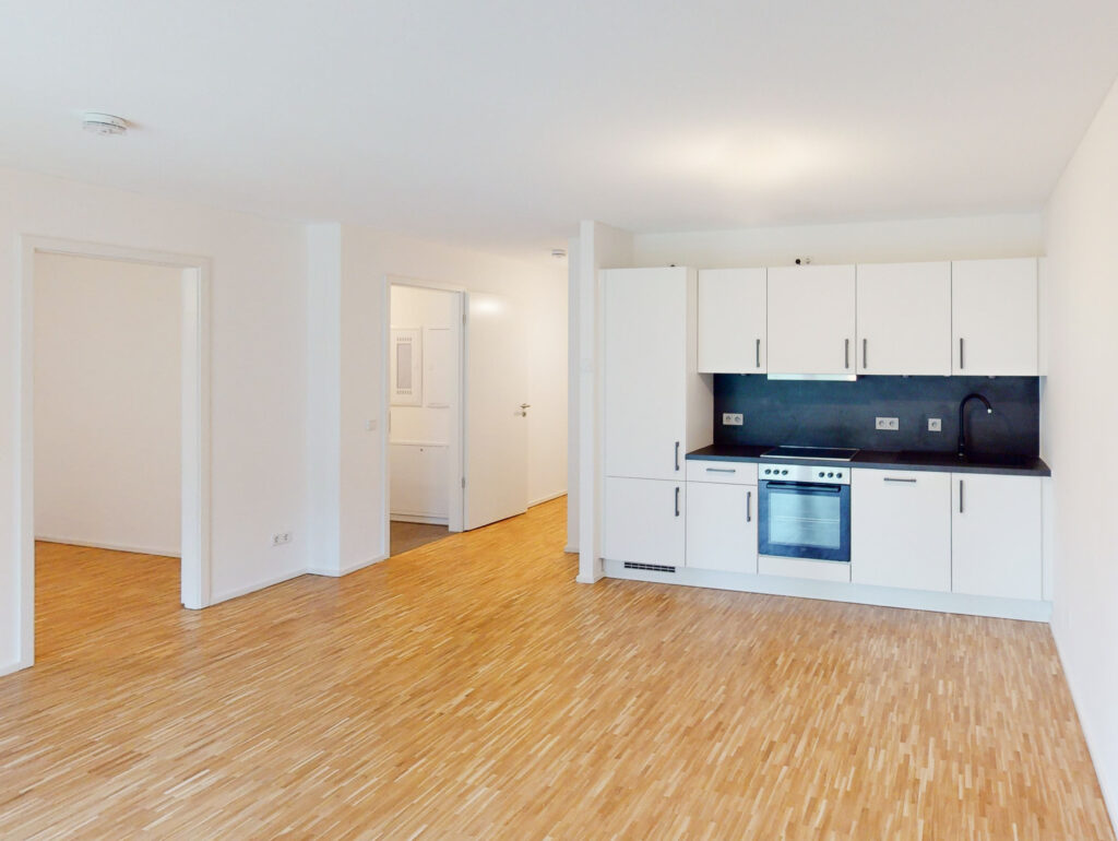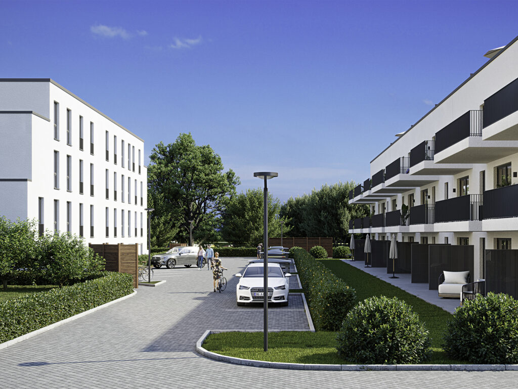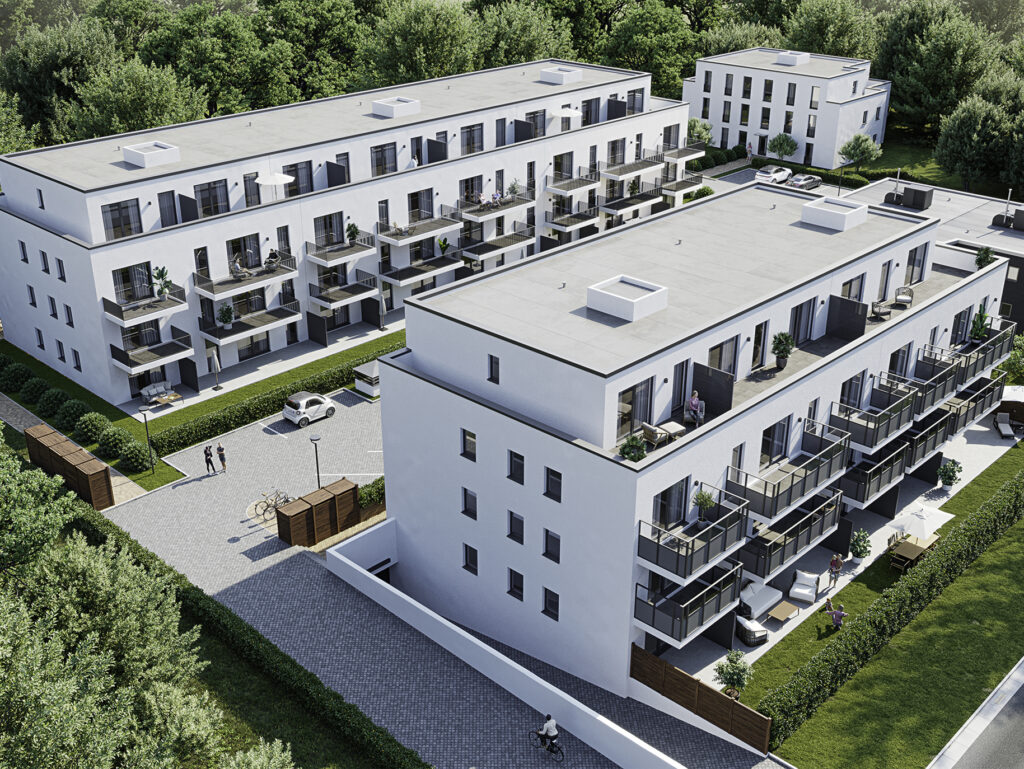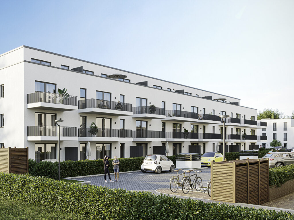 Dank KfW-55-Effizienz, moderner Lüftung und optimalem Schallschutz genießen Sie höchsten Wohnkomfort. Außen- und Tiefgaragenstellplätze sorgen für bequeme Mobilität. Ausreichend Fahrradabstellmöglichkeiten befinden sich im Innenhof.