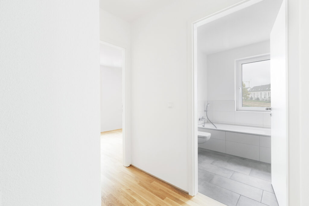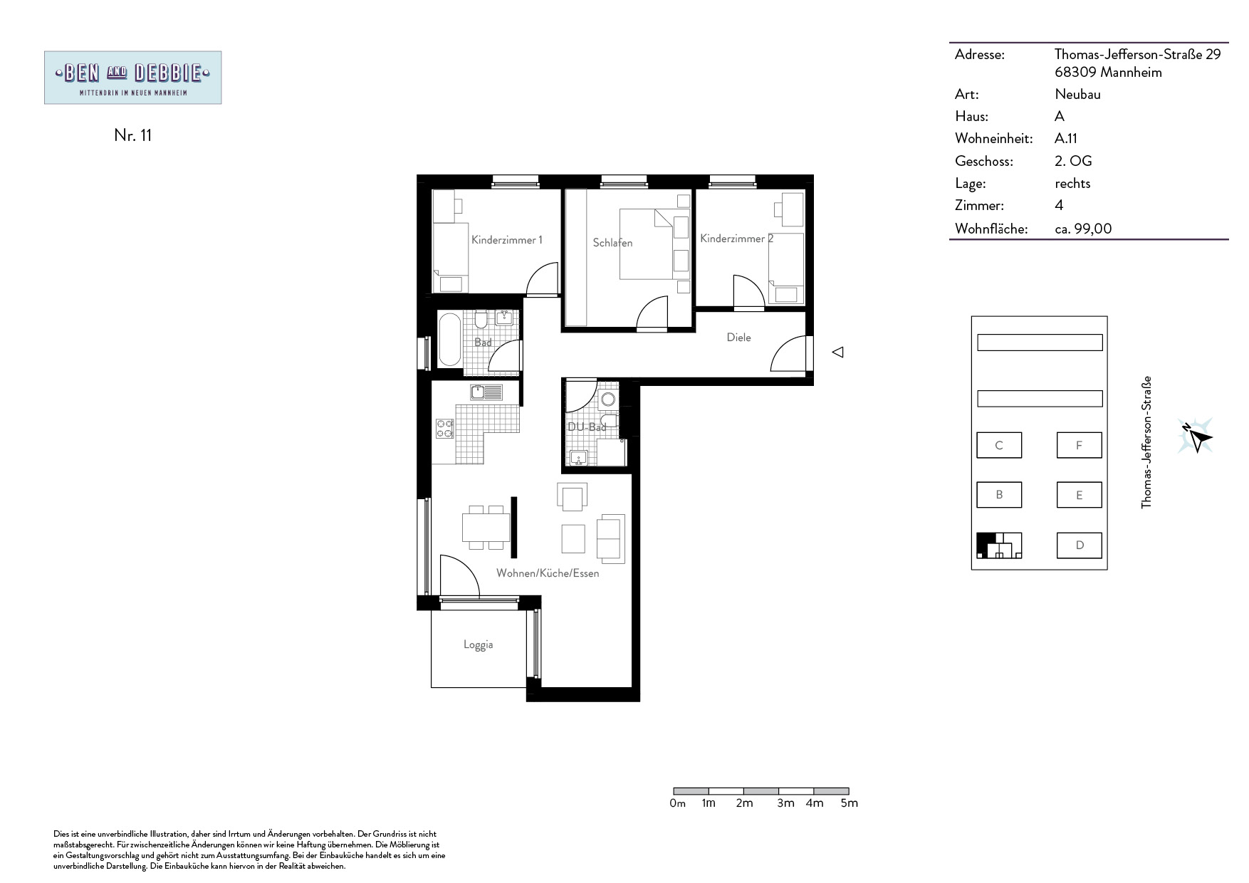 Diese attraktive 4-Zimmer-Wohnung ist Teil des Ben & Debbie und macht auf rund 100 Quadratmetern moderne Familienträume wahr! Von der Eingangsdiele gehen auf einer Seite die drei Schlafzimmer ab. Auf der gegenüberliegenden Seite öffnet sich der Flur zu einer halb offenen Küche und dem offenen Wohnbereich mit Zugang zu einer Loggia. Zudem gehört zu der Wohnung ein Wannenbad mit Tageslicht und ein separates Duschbad mit Waschmaschinenanschluss. Ausreichend Stauraum bietet der Kellerraum im Untergeschoss.
