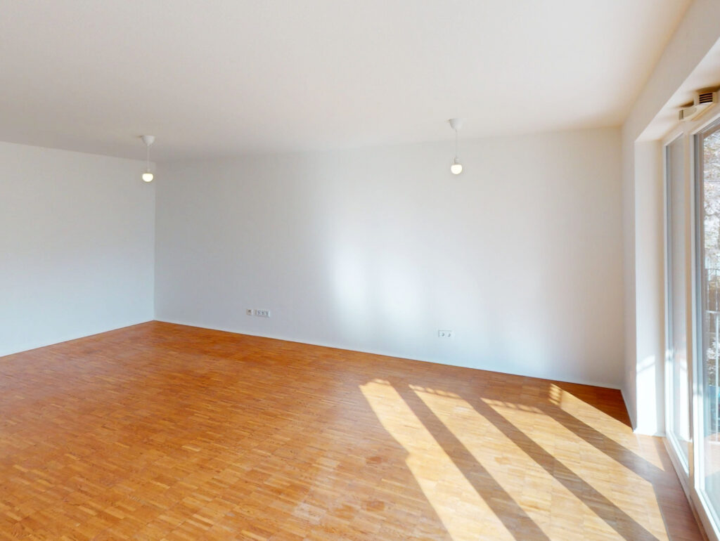 Die Wohnung bietet einen großzügigen Wohn- und Essbereich, der viel Raum für individuelles Einrichten lässt. Die separate Küche ist gut in die Wohnung integriert und verfügt über einen praktischen Abstellraum für zusätzlichen Stauraum. Vom Wohnbereich aus haben Sie Zugang zu einer Terrasse oder einem Balkon, der für zusätzlichen Freiraum im Freien sorgt. Das Schlafzimmer liegt ruhig am Ende des Flurs und bietet eine private Atmosphäre. Zusätzlich verfügt die Wohnung über zwei Arbeits- oder Gästezimmer, die vielseitig genutzt werden können. Das Badezimmer ist mit einer Badewanne und einer Dusche ausgestattet, und ein weiteres Dusch-WC sorgt für zusätzlichen Komfort. Große Fenster lassen viel Tageslicht in die Räume fluten und schaffen eine helle, einladende Wohnatmosphäre.