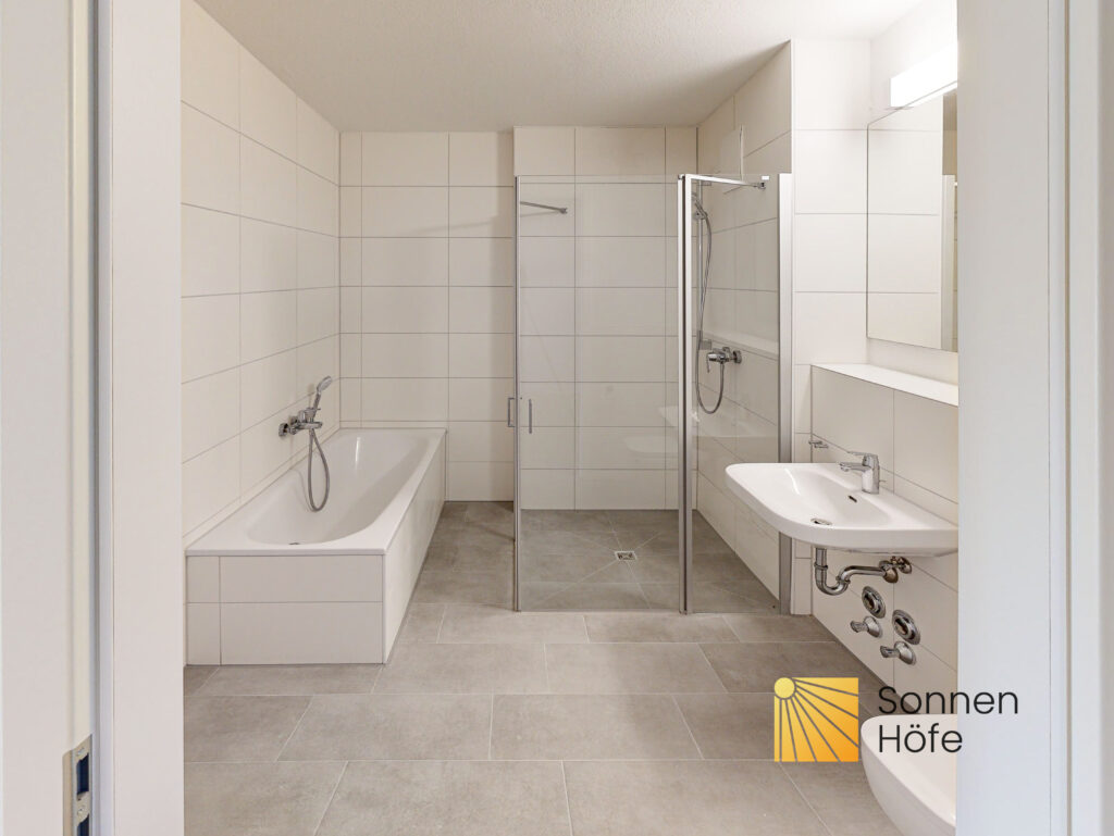 Bei den Bildern handelt es sich um eine Musterwohnung im Projekt. Den genauen Schnitt können Sie dem Grundriss entnehmen.