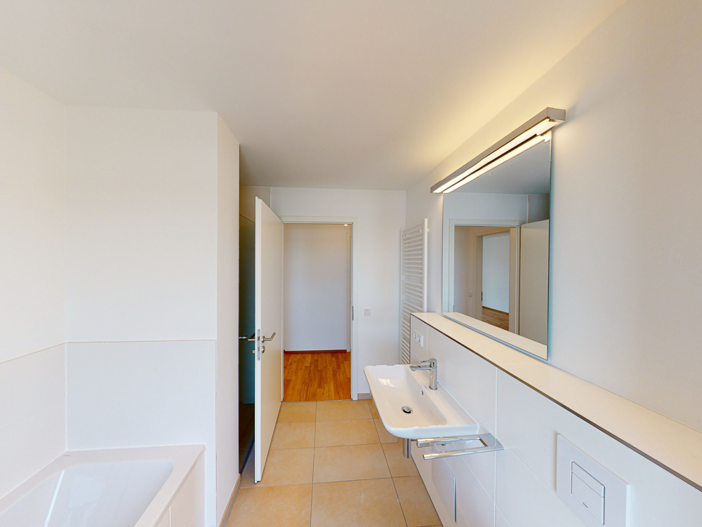 Die Wohnung ist Teil des Projekts DREIHEIT und liegt im Norden des Quartiers DIAMALTPARK. Die hier gezeigte 4-Zimmer-Wohnung ist kompakt geschnitten und komfortabel ausgestattet. Mit einem Elternschlafzimmer und zwei weiteren Zimmern bietet die Wohnung Platz für Kind oder Raum zur individuellen Gestaltung. Im Wohnbereich lassen sich Kochen, Essen und gemeinsame Freizeitgestaltung zur Familienangelegenheit machen. Außerdem begeistern zwei Balkone, ein Abstellraum sowie drei Bäder, von denen eines mit einer Badewanne ausgestattet ist.