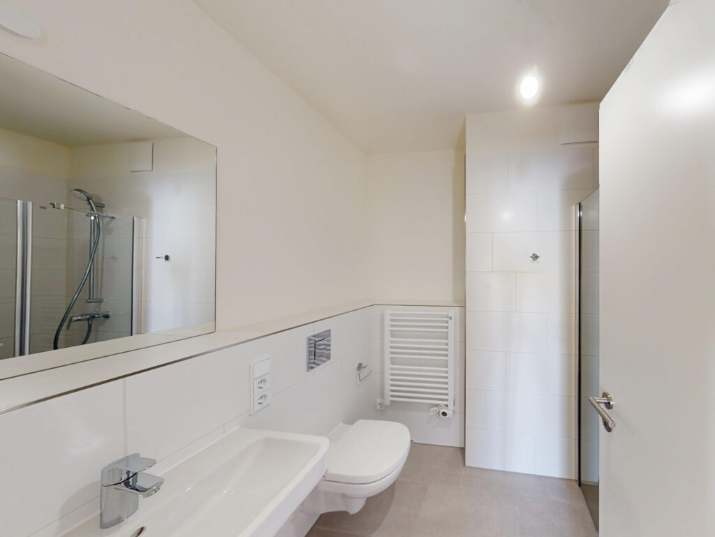 • Feinsteinzeug-Fliesen in Bädern, WCs und Abstellräumen