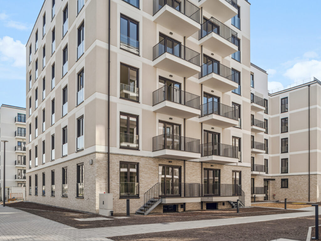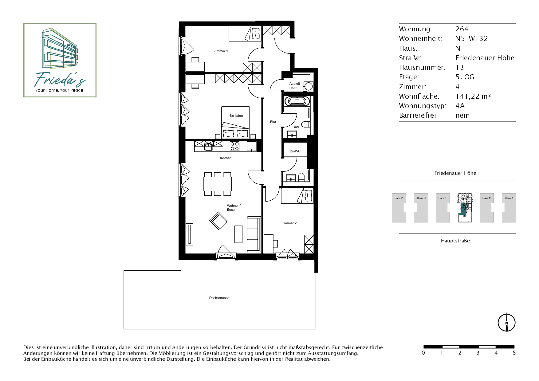 Mit dem FRIEDAS Berlin entsteht auf einem Areal von ca. 24.366 m2 ein modernes Wohnquartier. Der gesamte Neubau-Komplex in der Friedenauer Höhe umfasst sechs Gebäude mit insgesamt 396 Wohnungen, die in drei Bauabschnitten fertiggestellt werden. Im ersten Bauabschnitt entstehen 132 Wohnungen mit einem bis vier Zimmern, teilweise barrierefrei, sowie 69 TG-Stellplätze. Neben der Tiefgarage befinden sich im Untergeschoss auch Abstell-, Fahrrad-, Technik- und Müllräume sowie die Mieterkeller. Die moderne Architektur, bodentiefe Fenster und eine harmonische Farbgestaltung der Fassaden überzeugen ebenso wie die abwechslungsreich begrünten Außenanlagen. In Massivbaubauweise errichtet und erbaut gemäß den aktuell gültigen Bestimmungen der EnEV, erfüllen sämtliche Gebäude die Standards des GEG und „Effizienzhaus 55 EE“ sowie die Vorschriften des erhöhten Schallschutzes. Die Wärme- und Warmwasserversorgung sichert ein Blockheizkraftwerk. Die gärtnerische Gestaltung der Freiflächen umfasst Rasen und Pflanzbeete mit Stauden sowie Hecken, Sträucher und Kleingehölze. Die Abgrenzung der Erdgeschoss-Terrassen erfolgt ebenfalls durch Hecken. Ein Spielbereich für die Kleinsten mit Sandkasten und Spielgeräten wird ergänzt durch ebenerdige Spielflächen für Schach, Mühle oder Mensch-ärgere-dich-nicht.