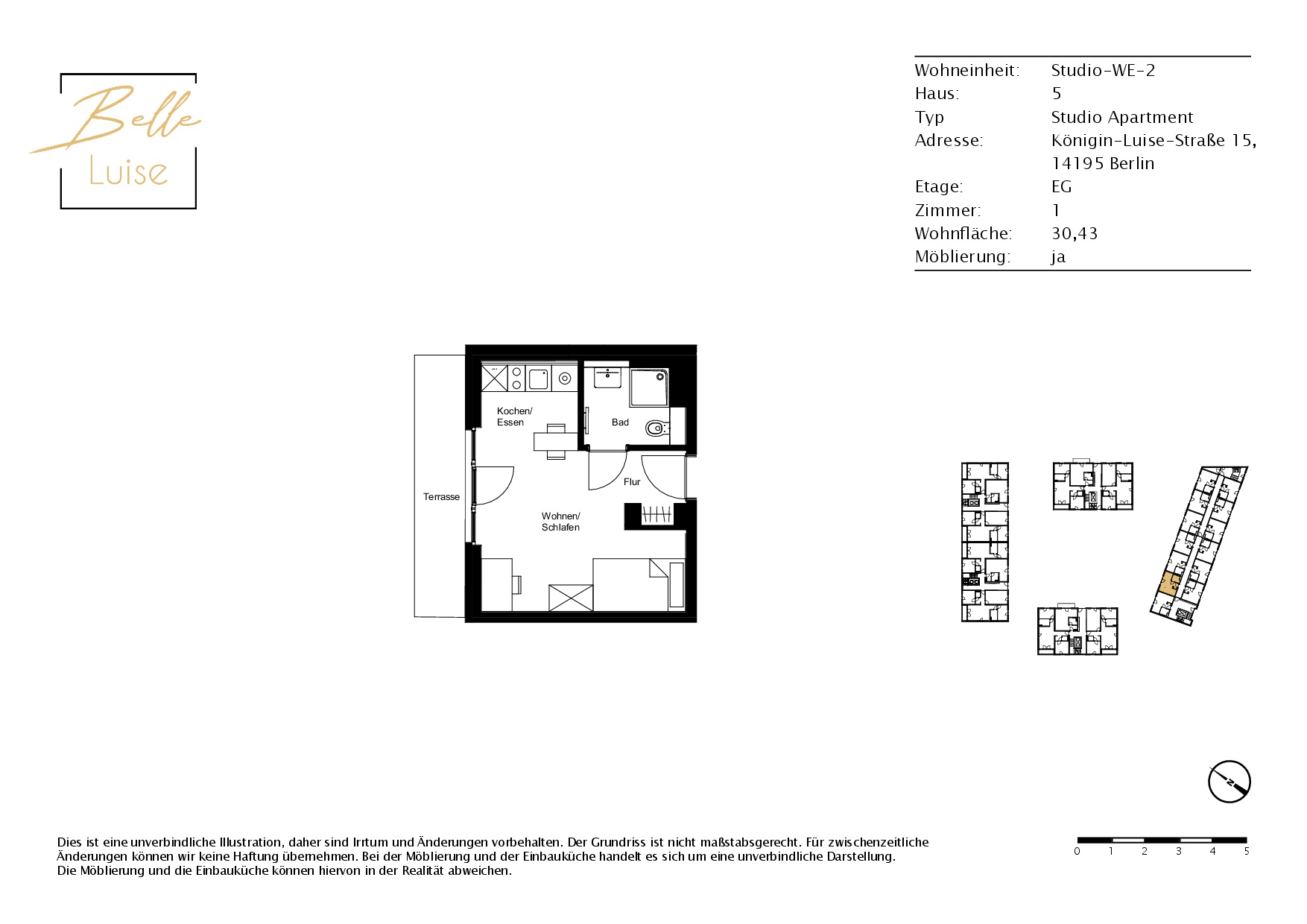 Der helle Wohnbereich bietet viel Platz zum Entspannen, Arbeiten oder Gäste empfangen. Die praktische Nische schafft einen separaten Schlafbereich ohne zusätzliche Wände – perfekt gelöst! Der offene Kochbereich ist modern integriert, die eigene Terrasse erweitert den Wohnraum nach draußen – ideal zum Relaxen im Grünen.