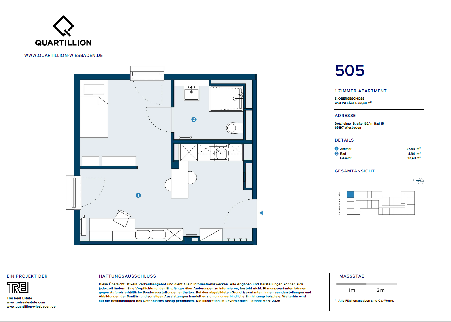 Das Quartillion liegt im charmanten Rheingauviertel – einem der beliebtesten und lebendigsten Stadtteile Wiesbadens. Geprägt von prachtvollen Jugendstilfassaden, grünen Alleen und einer zentralen Lage, vereint das Viertel urbanes Leben mit einer entspannten Atmosphäre. Hier wohnt man ruhig und zugleich mitten im Geschehen. Im Erdgeschoss des Gebäudes befindet sich eine moderne Netto-Filiale, die den täglichen Einkauf besonders bequem macht. Auch sonst sind die wichtigsten Ziele des Alltags schnell erreicht: Die Hochschule RheinMain liegt nur 800 Meter entfernt, die Hochschule Fresenius rund 1,5 Kilometer und die EBS Universität für Wirtschaft und Recht etwa 3 Kilometer. Der Wiesbadener Hauptbahnhof sowie das Stadtzentrum sind jeweils in rund 2,2 Kilometern erreichbar. Das Umfeld des Quartillion überzeugt mit einem vielfältigen Mix aus Cafés, Restaurants, Bars und kleinen Läden – ideal für ein gemütliches Frühstück, ein Abendessen mit Freunden oder einen Drink in entspannter Atmosphäre. Zahlreiche Sport- und Freizeitangebote in der Nähe sorgen zudem für einen aktiven Ausgleich zum Studien- oder Berufsalltag. Die Verkehrsanbindung ist hervorragend: Die Bushaltestelle „Kleinfeldchen/Stadtarchiv“ befindet sich direkt um die Ecke, eine Fahrradleihstation liegt gegenüber, und auch eine Carsharing-Station ist schnell erreichbar. Mit dem öffentlichen Nahverkehr erreicht man die Innenstadt in nur rund 11 Minuten – ob zur Uni, zum Bahnhof oder ins Zentrum, vom Quartillion aus ist alles bestens angebunden.