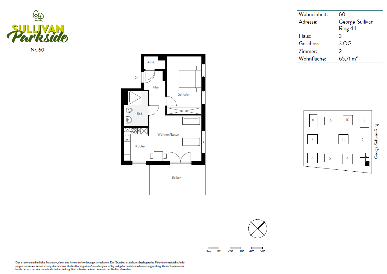 Die hier angebotene 2-Zimmer-Wohnung verfügt über einen geräumigen Flur, einem ebensolchen Schlafzimmer und einem großen, lichtdurchfluteten Wohn- und Esszimmer mit L-förmiger Küchenzeile. Viel Platz bietet auch der angrenzende Balkon. Praktisch ist die begehbare Abstellkammer mit Anschlüssen für Waschmaschine und Trockner. Ein innenliegendes Badezimmer mit Dusche macht den 2-Zimmer-Traum perfekt.