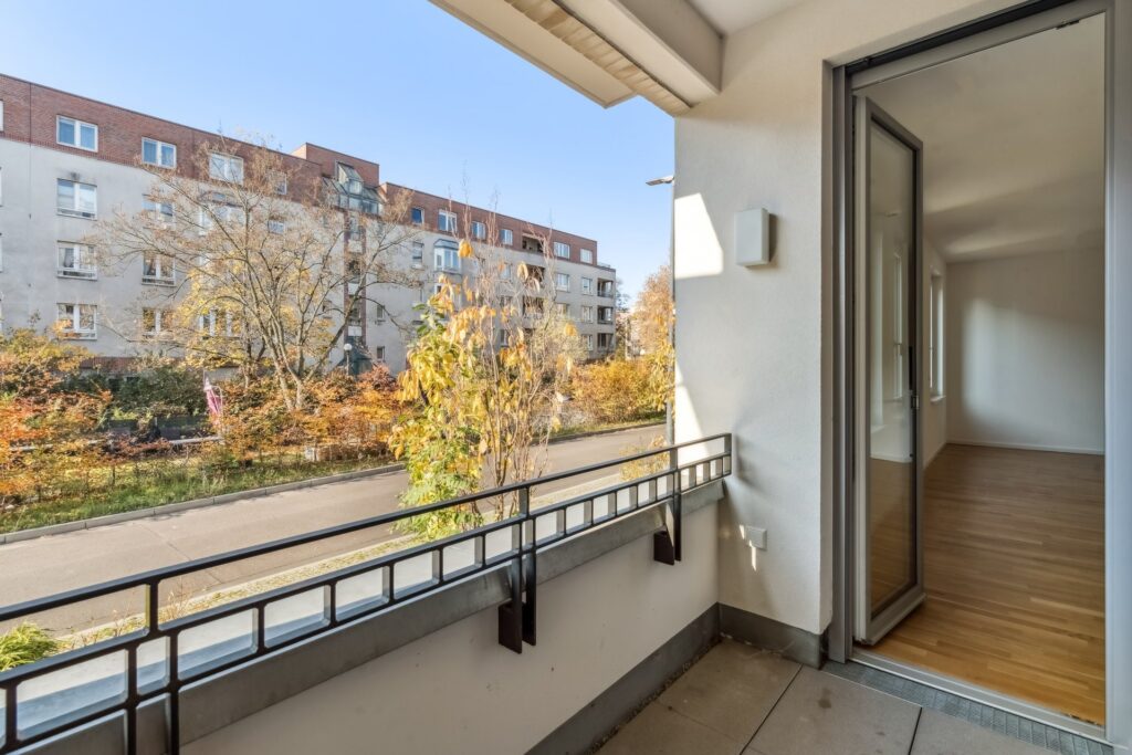 Jede Wohnung begeistert mit einem Balkon, einer Loggia oder Terrasse. Einige der Erdgeschosswohnungen verfügen über einen eigenen Garten. Raumhöhen zwischen 2,72 und 2,90 Metern, teils bodentiefe Fenster und glattweiß tapezierte Wände verleihen den mit Eichenparkett ausgelegten Wohnräumen eine großzügige Ausstrahlung.