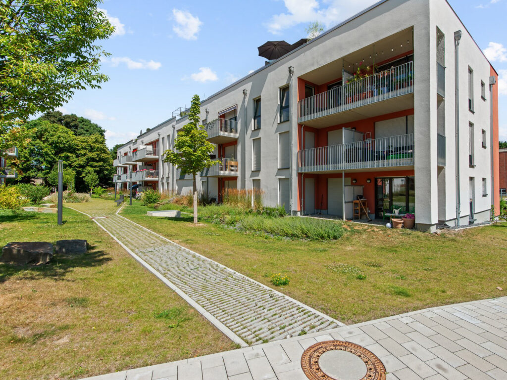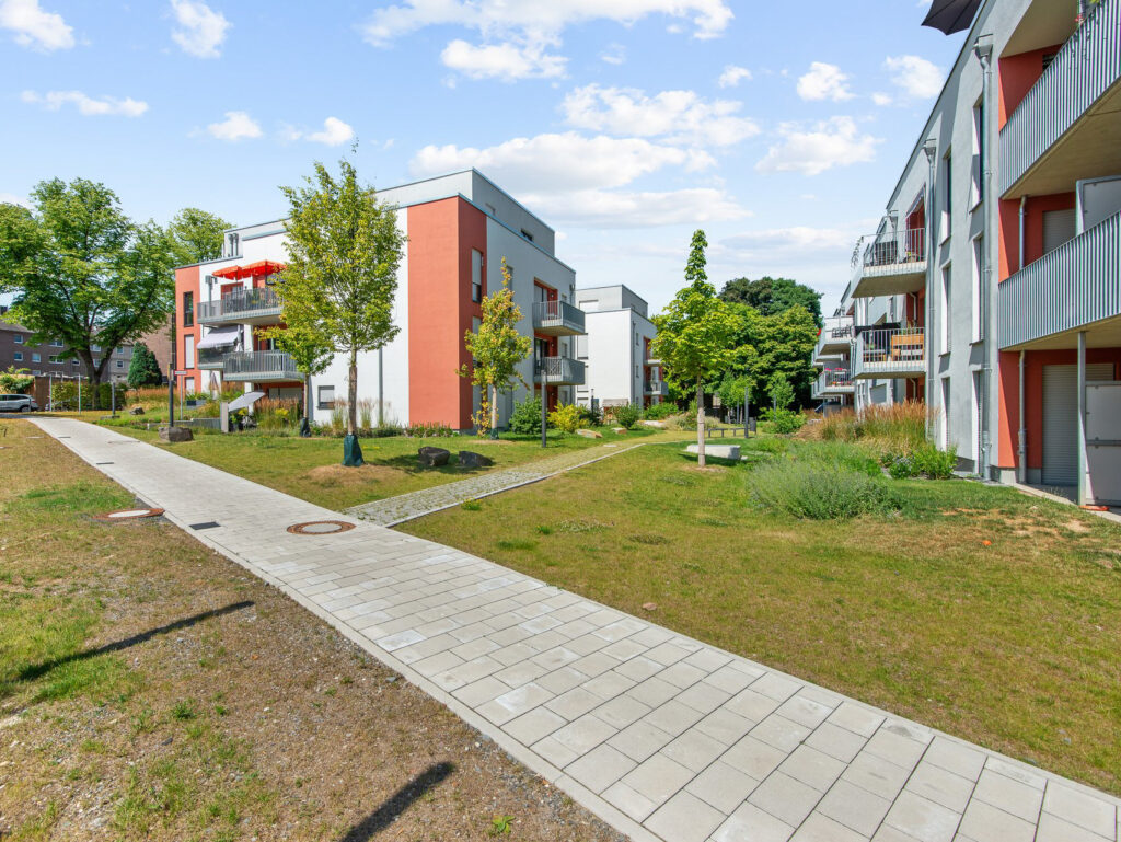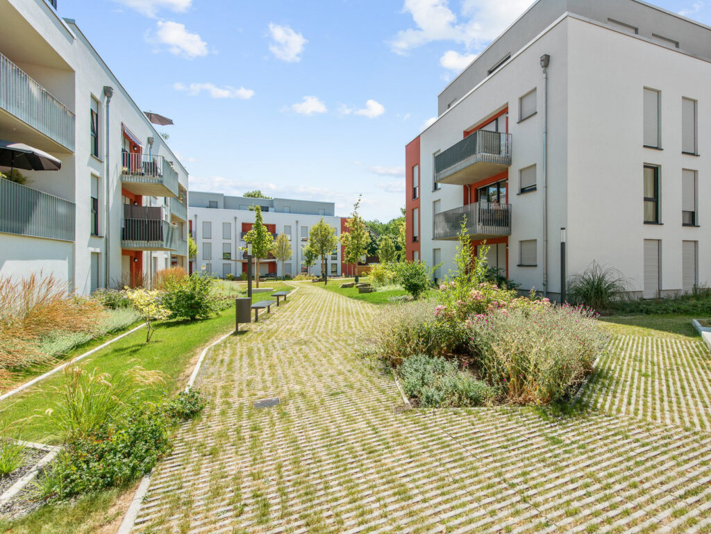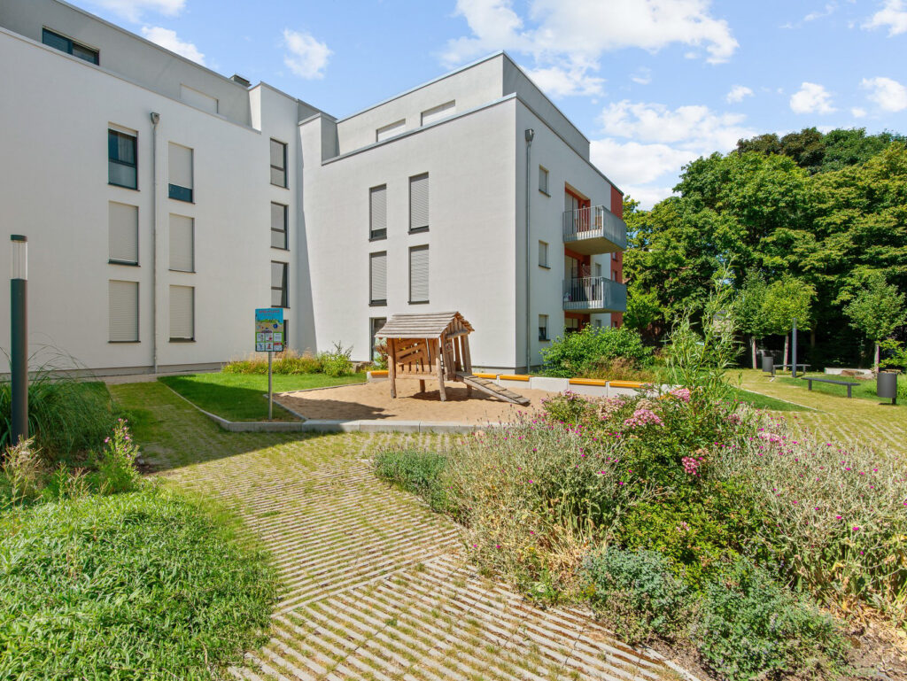 Ein begrünter Innenhof mit Spielplätzen schafft eine einladende Wohlfühloase für alle Generationen. Die energieeffizienten Gebäude (KfW-55) überzeugen mit erhöhtem Schallschutz, moderner Lüftungstechnik sowie bodentiefen Fenstern mit Mehrscheiben-Verglasung und elektrischen Rollläden.