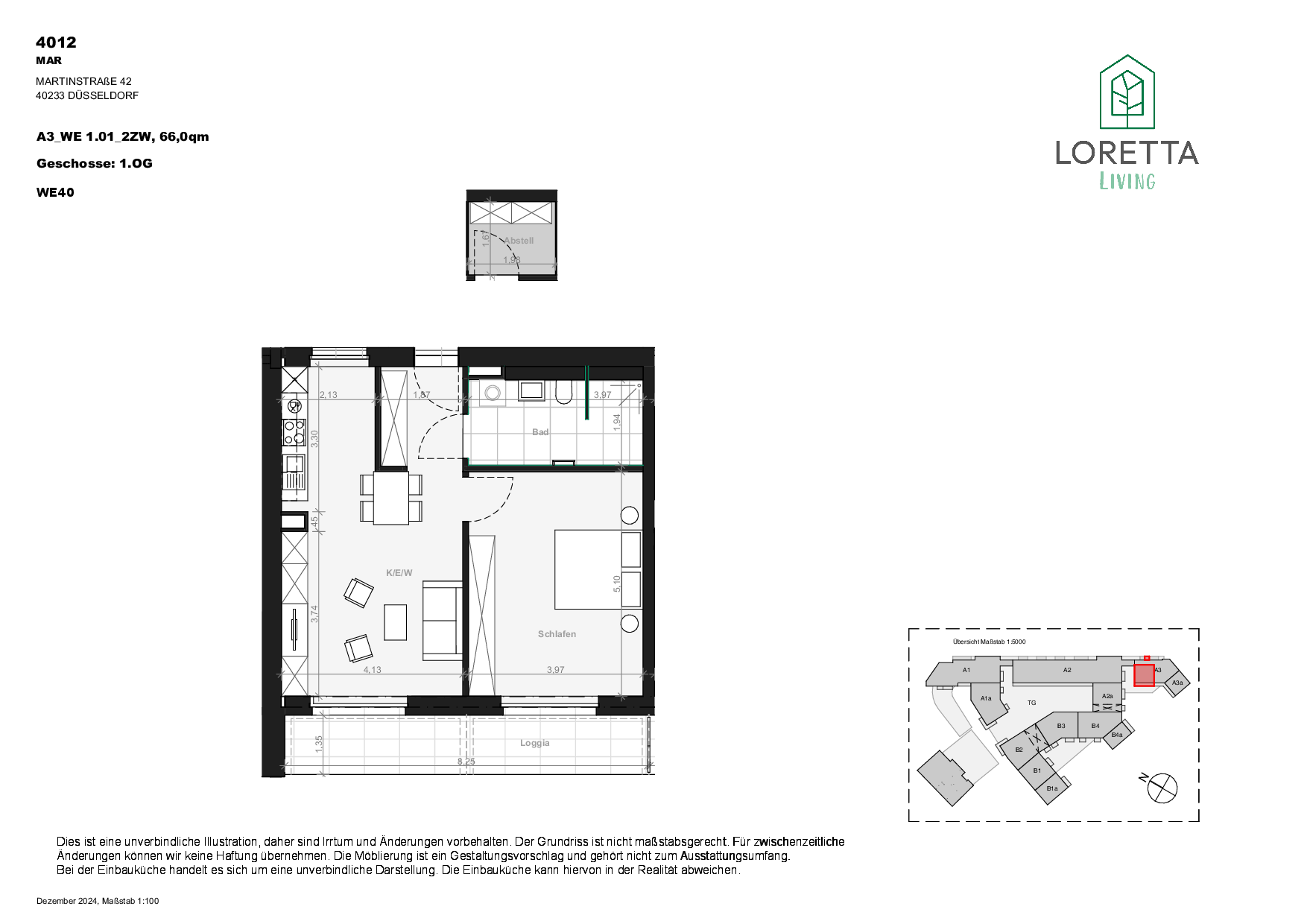 Willkommen bei Loretta Living – einem modernen Wohnensemble in zentraler Lage von Düsseldorf, das urbanes Lebensgefühl mit naturnahem Wohnen verbindet. Das Gebäudeensemble bestehend aus einem fünf- und einem viergeschossigen Baukörper verkörpert modernes, komfortables Wohnen und bietet eine vielfältige Auswahl an durchdachten Grundrissen – ideal für Singles, Paare und Familien. Jede Wohnung überzeugt durch helle, offene Räume, Fußbodenheizung, eine moderne Einbauküche sowie Fenster mit Dreifachverglasung und erhöhtem Schallschutz. Besondere Highlights sind die privaten Außenbereiche: Alle Einheiten verfügen über einen Balkon, eine Loggia oder eine Terrasse mit Blick auf begrünte Innenhöfe – ideal zum Entspannen. Dank Aufzügen, stufenlosem Zugang und durchdachtem Design ist Loretta Living für jede Lebensphase geeignet.
