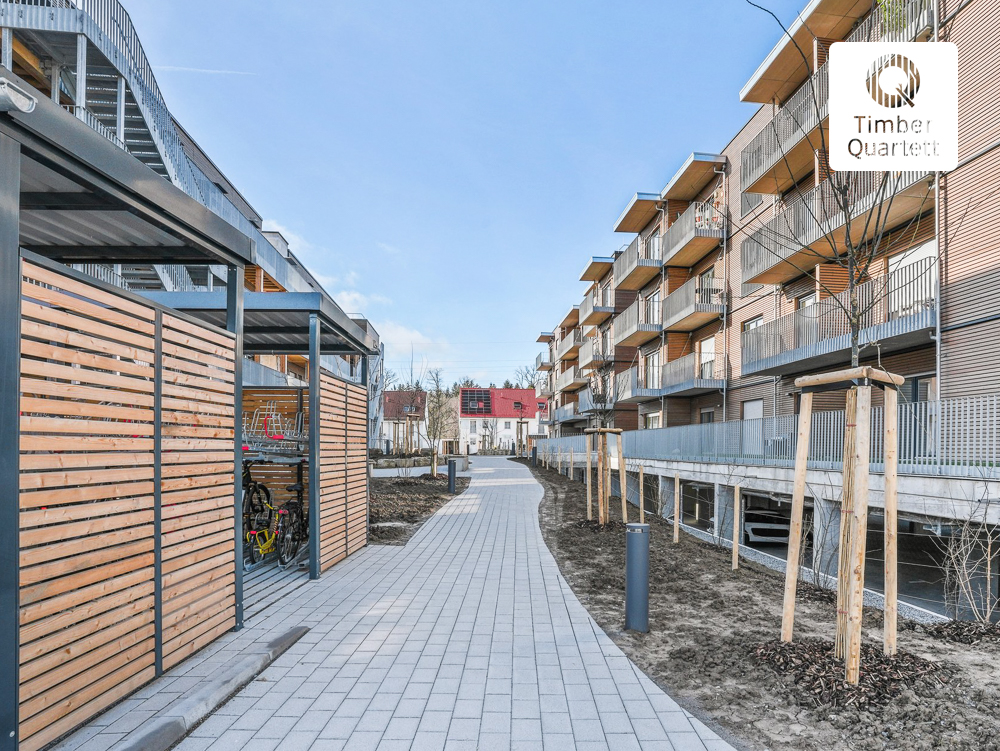 Bei den Bildern handelt es sich um unverbindliche Visualisierungen (Visualisierung TOWN) und Bilder der Musterwohnung. Gerne können Sie sich im Zuge einer Besichtigung der Musterwohnung selbst vom TimberQuartett überzeugen.