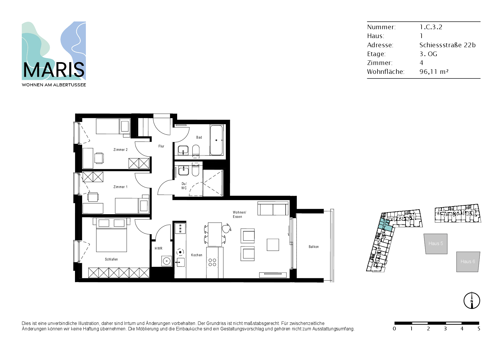Diese Wohnung eignet sich für einen 3- bis 4-Personenhaushalt. Bei Abweichungen sprechen Sie uns gerne an.