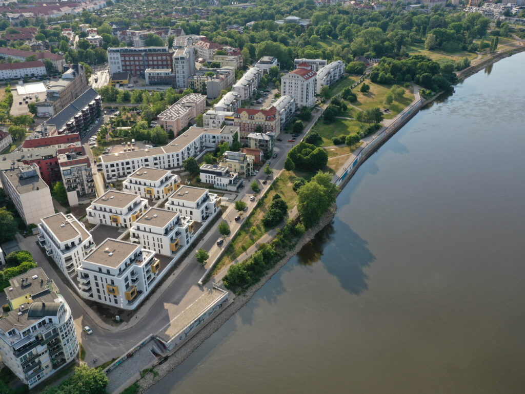 Einzigartig positioniert: Das "Quartier an der Elbe" präsentiert sich als vollendetes, hochwertiges Wohnensemble direkt am Magdeburger Elbufer. Mit schlichter Architektur und sieben Gebäuden, die eine Kombination aus Blockrandbebauung und freistehenden Strukturen im KfW-Standard 55 bilden, definiert es den Charme dieses exklusiven Neubauquartiers.