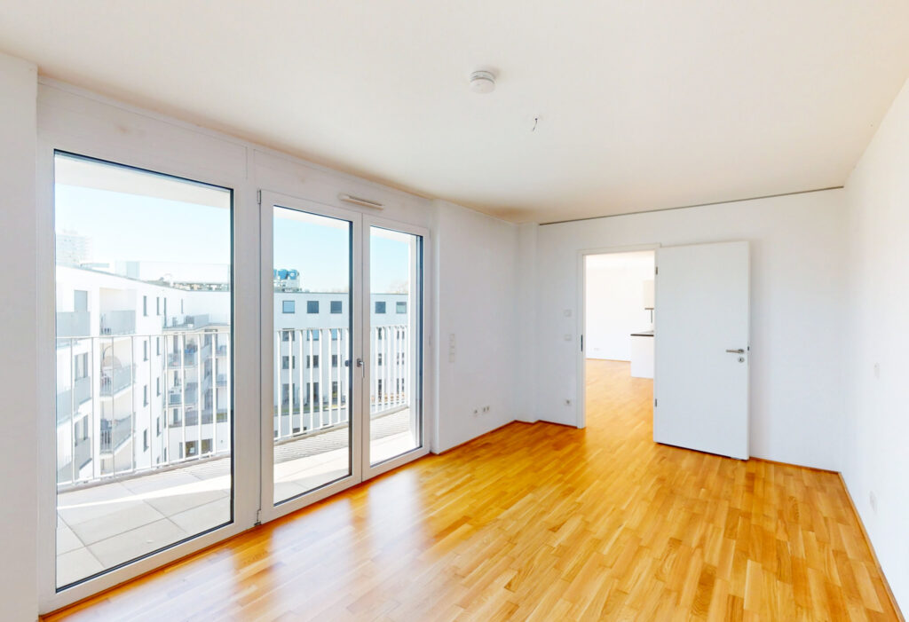 Die verfügbare 2-Zimmer-Wohnung verfügt über einen individuell geschnittenen Wohnbereich mit moderner Küchenzeile, welcher ausreichend Platz zum Wohnen, Kochen und Essen bietet – attraktiv erweitert durch zwei Balkone, welche zu gemütlichen Stunden im Freien einlädt. Zusätzlichen Wonkomfort bietet neben dem gemütlichen Schlafzimmer mit Balkon-Zugang das modern geflieste Duschbad mit bodengleicher Dusche. Zusätzlichen Stauraum bietet der separate Abstellraum mit Platz für Waschmaschine und Trockner.