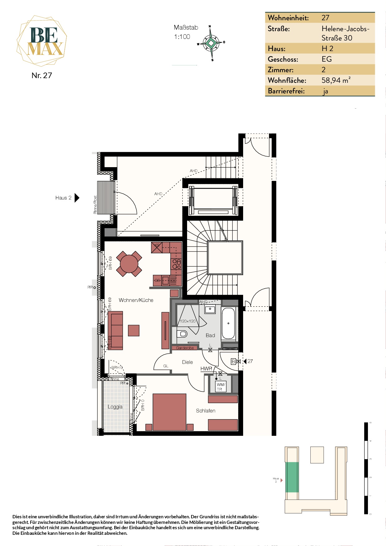 Die Bäder und WCs überzeugen mit großformatigen Fliesen sowie Einbauten und Armaturen namhafter Hersteller*innen. So sind bodenebene Duschen, Trennwände aus Glas oder flache Handtuchwärmer in allen Wohnungen Standard. Dies gilt auch für die hochwertige Einbauküche, die bereits mit elektrischen Markengeräten ausgestattet ist. Darüber hinaus bieten alle Wohnungen eine Fußbodenheizung, Sonnenmarkisen und in den Erdgeschossen elektrische Rollläden.